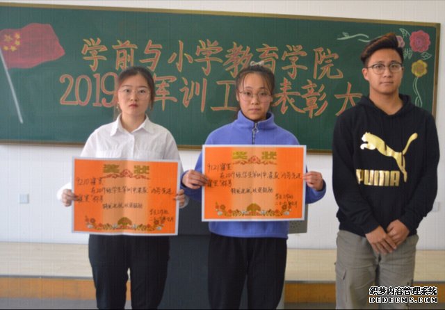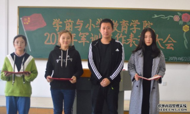 为表彰19级同学在军训活动中的出色表现,培养同学们的爱国情怀,吉林师范大学博达学院学前与小学教育学院于2019年10月22日下午3:20在综合楼1318教室举办了军训工作表彰大会。出席本次活动的人员有学前与小学教育学院学工办主任柳志明老师,学生会主席韩自华及2019级受表彰的学生。