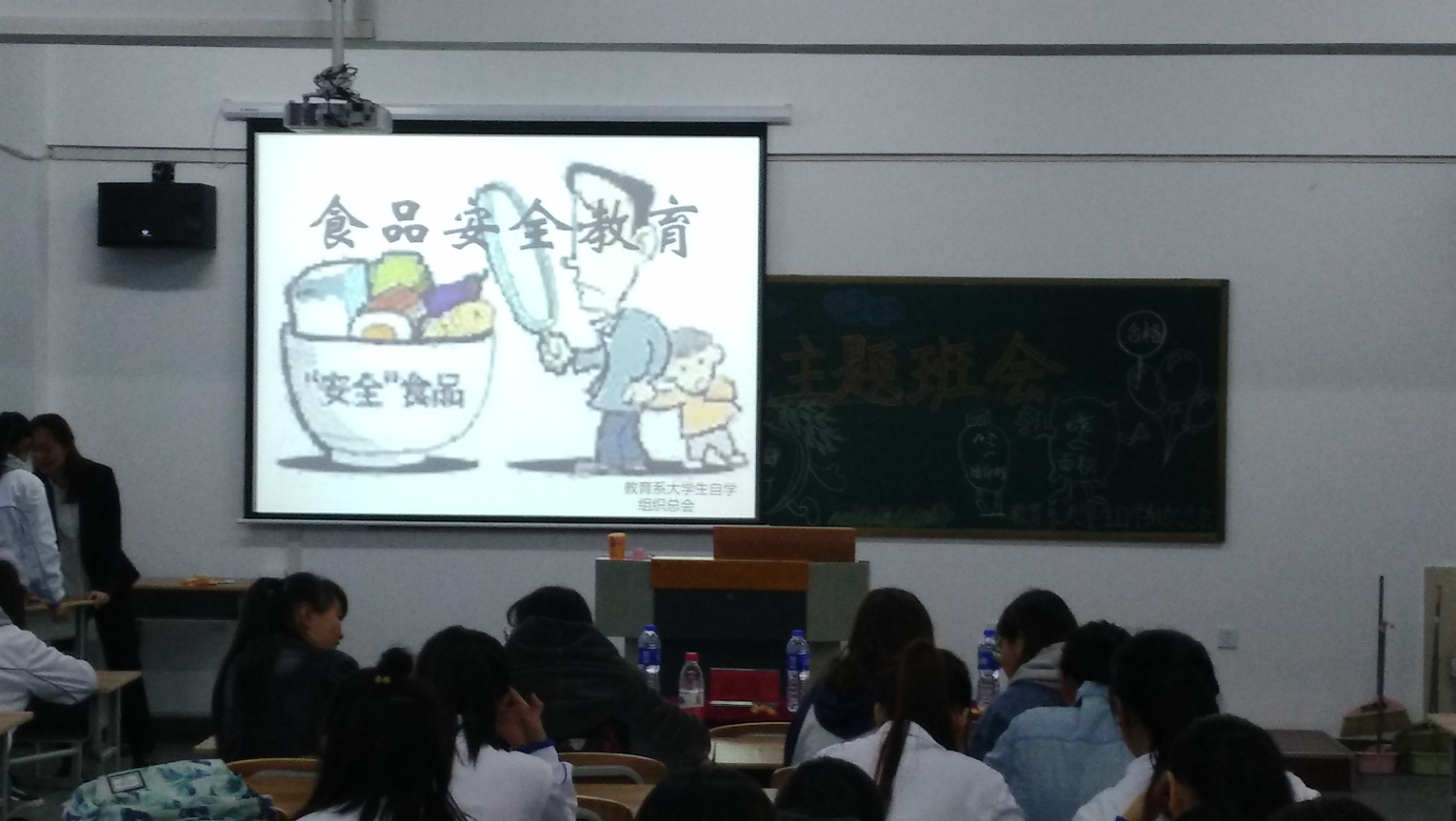 2019年4月14日下午6点30分,教育系大学生自学组织总会于综合楼1302教室组织18级教育系1、2班全体成员进行了食品安全教育主题班会,我系主席团成员及各部部长出席了本次食品安全教育主题班会。
