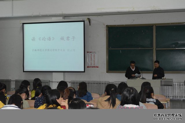 2016年3月20日晚,吉林师范大学博达学院中文系侯云龙老师受邀为我系学生演讲“读论语 做君子”主题讲座,当晚二教六楼报告厅座无虚席,在热烈的掌声中,侯老师开始了演讲,将同学们拉进一个崇德尚礼的氛围之中。