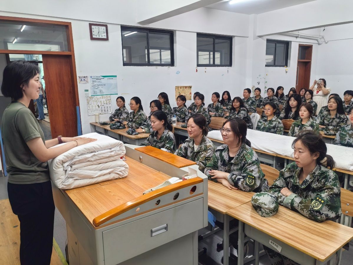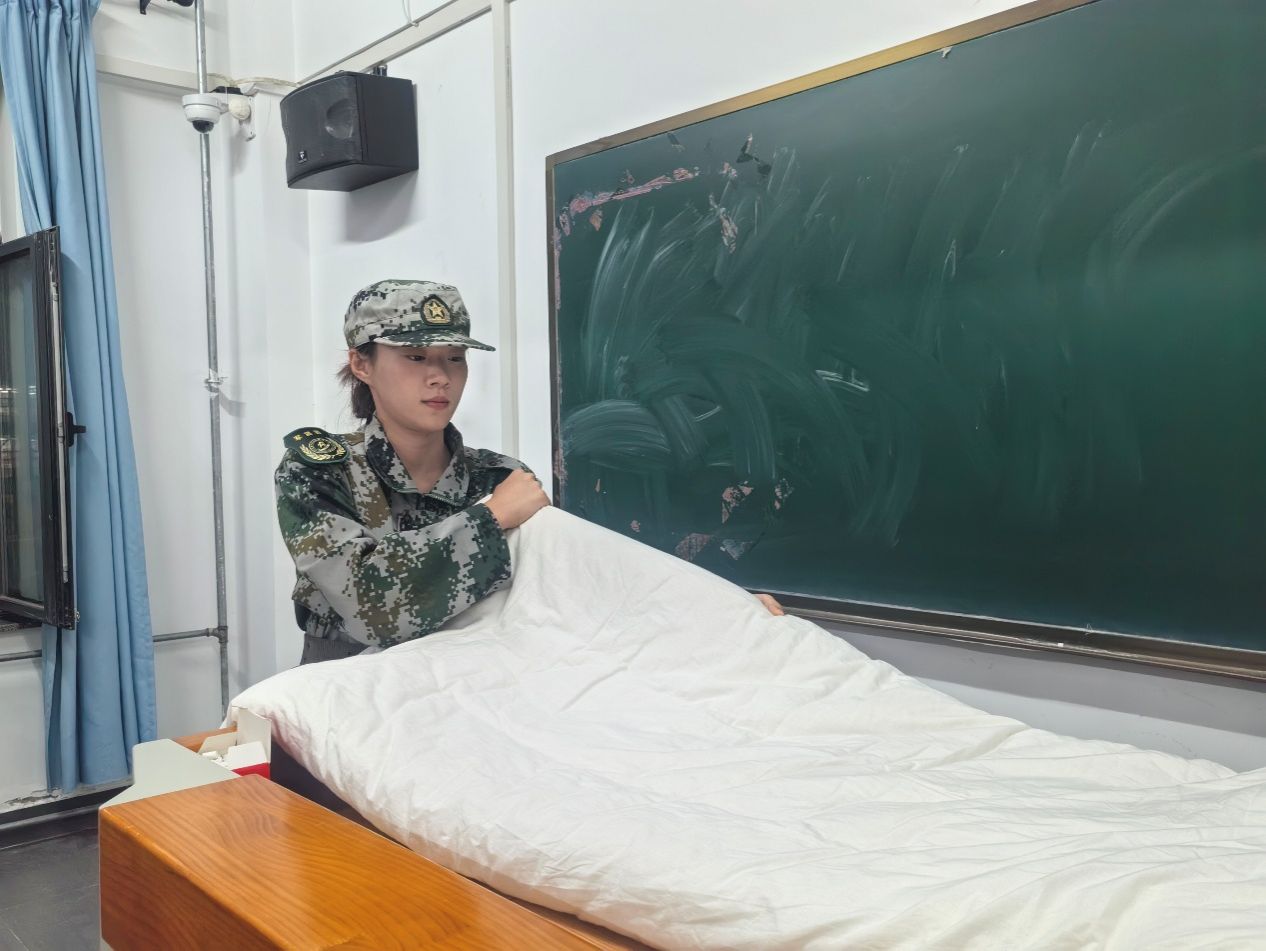训练场上能淬炼精神,内务整理同样是磨炼意志的“小课堂”,是青春里一场“整齐”的美好邂逅。教官们耐心十足,手把手向“新兵们”传授“叠、压、折、挤、捋、修”的技巧,每一个动作都体现出细致与严谨。“新兵们”目光专注,认真学习每个步骤。瞧!一个个方正的“豆腐块”在大家手中成型。大家这份为追求赏心之美而倾注的认真,值得肯定!