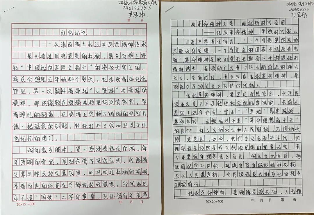 翻开沉甸甸的手写征文,字里行间满是赤子真挚。以“传承革命精神,争做时代新人”为题,在字斟句酌的标准汉语里,诉说着青年一代对使命担当的深刻思考。每一篇都是对革命历史的深情回望,每一笔都是对精神血脉的坚定传承。