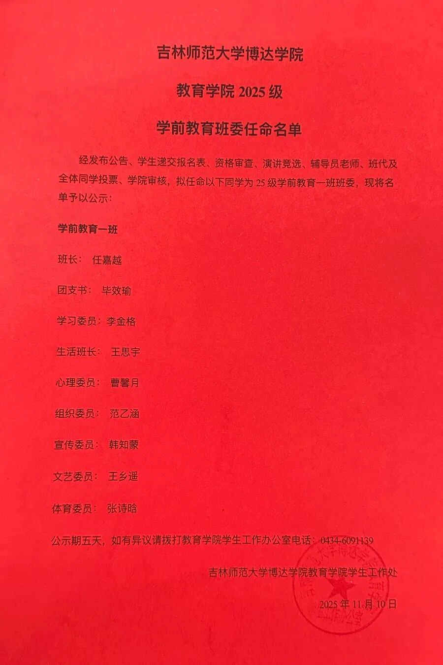 从入学起,各班辅导员与班代便同步开启了对新生的日常考察,经过两个月的观察记录、综合评估,再结合竞选当天同学们的现场演讲展示与班级民主投票,本次班委选举最终顺利收官。25级新生们也将在新班委的带领下,开启充满活力的大学生活。现将竞选结果公布如下: