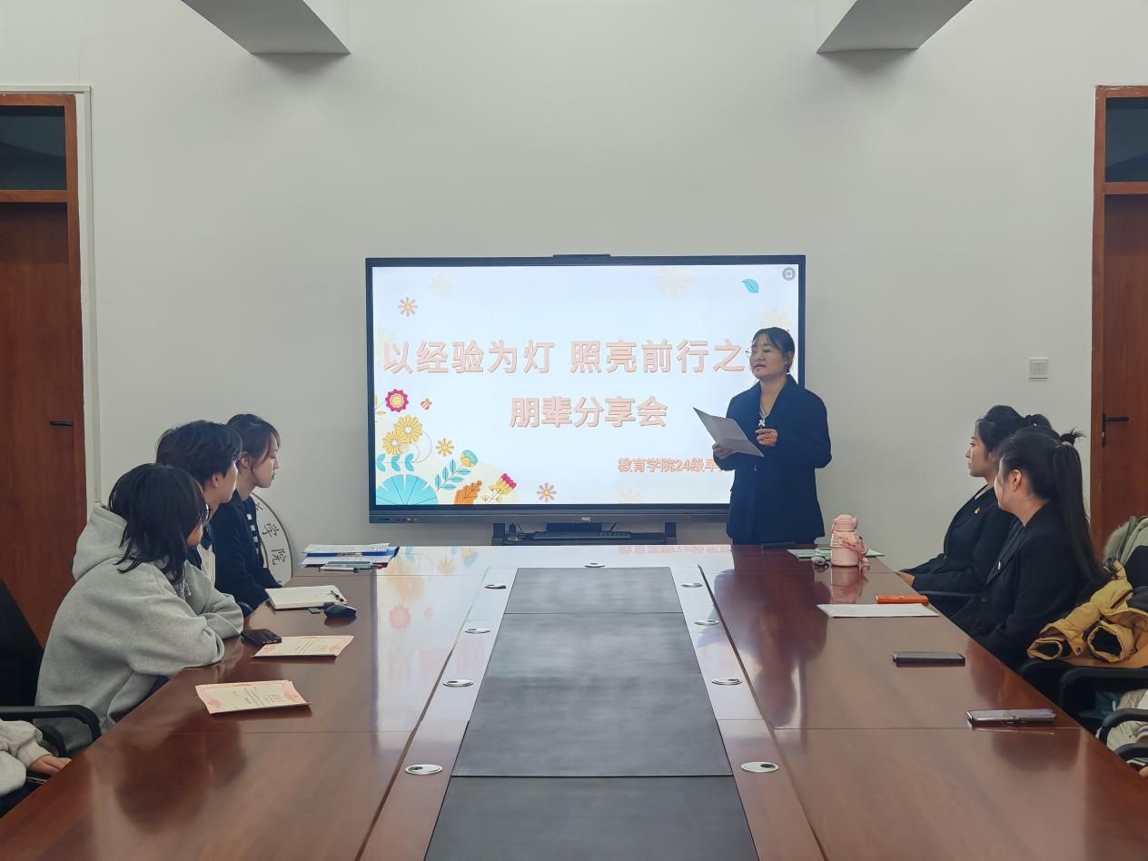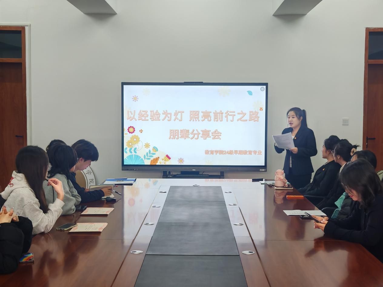 为了帮助24级早期专业的同学们明确目标,了解专升本备考信息,解答心中疑惑。教育学院于2025年11月12日15:00在综合楼1309会议室举办主题为“经验为灯,照亮前行之路—朋辈分享会”。参加本次会议的人员有22级本科辅导员马金铭老师、23级本科辅导员刘皓源老师、23、24级专升本辅导员王一波老师、24级本专科辅导员高馨老师、25级专升本(两年制)小学教育辅导员朱滢羽老师以及24级早期教育全体学生。