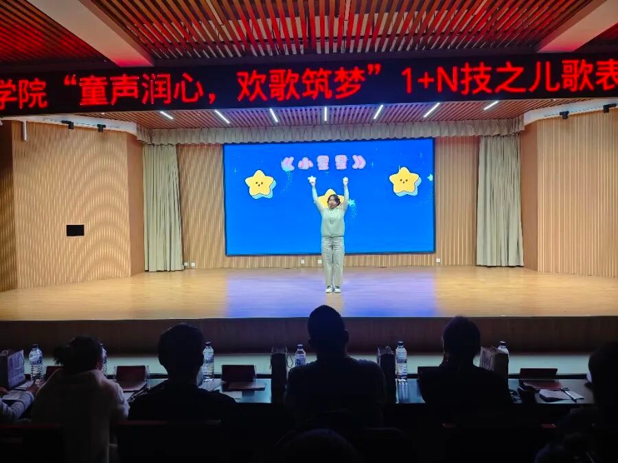 为了提升学前教育专业学生的儿歌表演能力,激发其教育职业热情,教育学院于2025年11月23日晚上6:30在图书馆报告厅举行1+N技之儿歌表演唱大赛。本次活动以“童真”与“教育赤诚”为核心。莅临本次大赛的评委有教育学院院长经柏龙教授,专职教师赵胜男老师、赵威老师、马兰老师、龚健美老师、王涛老师。24级、25级部分学生参加。