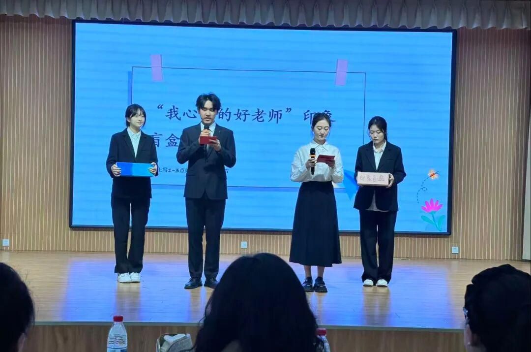 首先,学生们写下自己认为“好老师的三个礼仪细节”,并置于盲盒中。由主持人随机抽取并朗读。