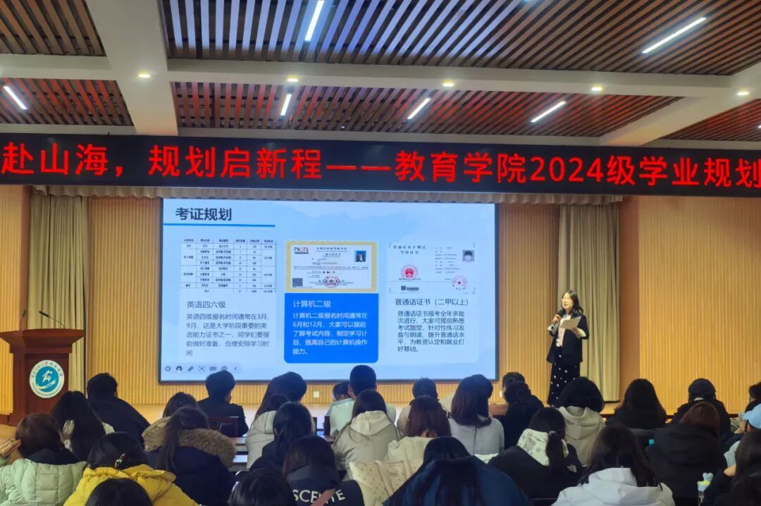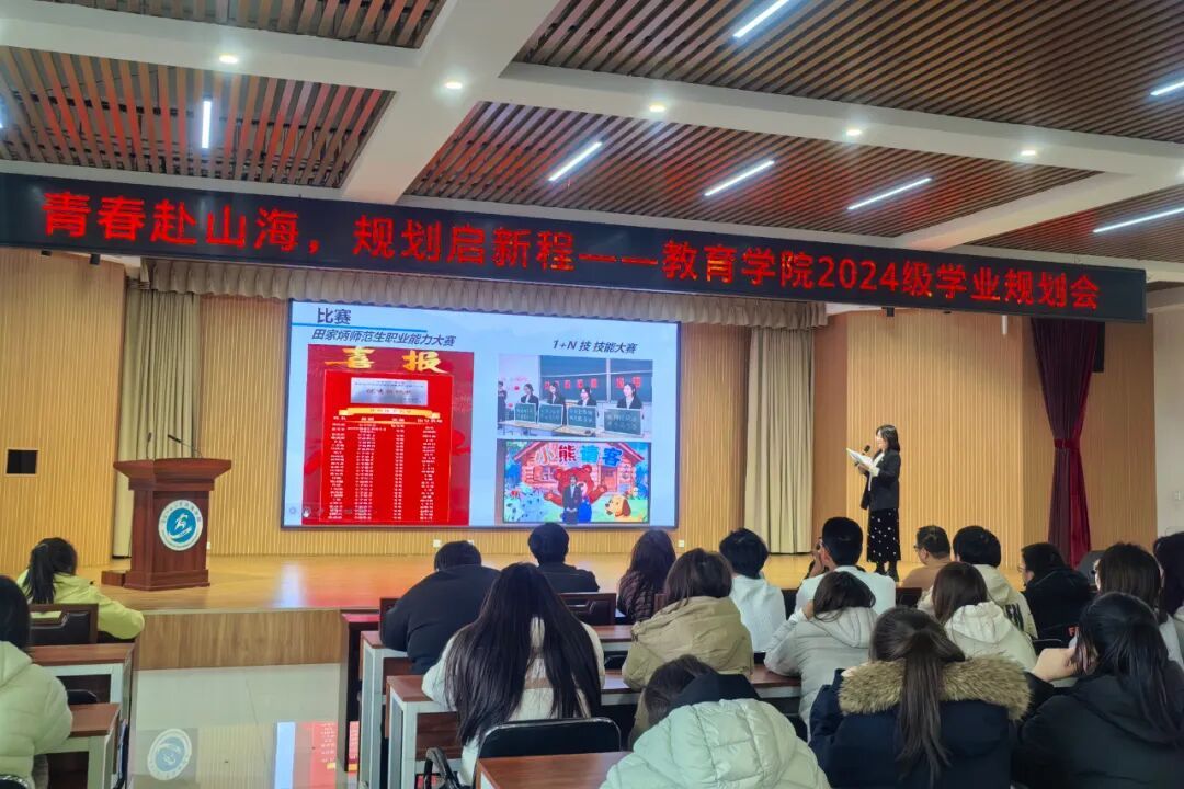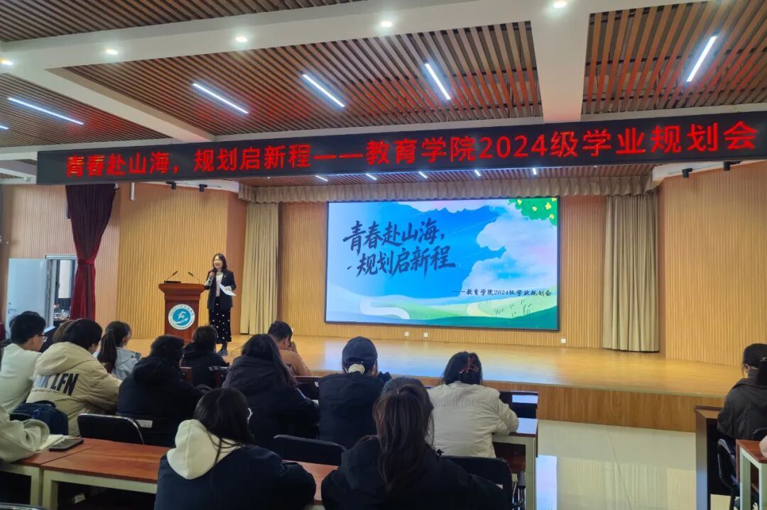 为进一步统筹新学期各项工作部署,夯实师范生专业成长根基,教育学院于2026年3月19日15:40在图书馆一楼报告厅顺利召开2024级学业规划会。本次会议由24级本专科辅导员高馨老师主持,24级本专科全体学生参加。