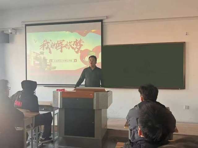 会议伊始,汤鹏宇老师详细地向同学们介绍了应征入伍的条件、应征入伍的程序、报名方式以及优惠政策,鼓励同学们积极响应国家号召踊跃报名参军,为国防建设贡献自己的青春,为国家的繁荣富强贡献自己的力量。汤鹏宇老师指出,入伍不仅是个人的荣耀与锻炼机会,更是对国家和民族的担当与奉献。