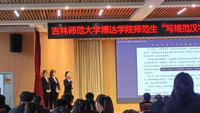 赛事伊始,选手们迅速投入到紧张而充满激情的比赛中,他们先是展示了钢笔字和粉笔字的书写实力,选取了《七律·长征》这首经典的诗词作为书写素材,一笔一划皆见功力。标准字音的朗读环节同样精彩纷呈,从字、词到文章,选手们流畅自如的发音与精准到位的吐字赢得了评委与观众的高度赞赏。通过主题演讲,他们用生动的语言讲述了感人肺腑的故事,展现了自己的表达艺术与教育情怀。