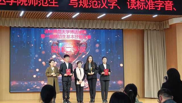 大赛的热烈氛围中,学前与小学教育学院师范生才华熠熠生辉,他们以严谨的书法、准确的发音和铿锵有力的叙述,彰显了深厚的语文功底与教育热忱。在激烈的角逐后,学前与小学教育学院凭借着精湛的技艺与出众的表现,荣膺团体二等奖。