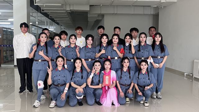 我院参赛队伍选择了电影《红星闪闪》中的传统民间舞蹈《映山红》,比赛过程中,选手们动作干脆有力,从最初刚毅果敢、充满自信的参加革命队伍,到最终战场上英勇杀敌、奋战牺牲的壮烈,表达了对烈士们深深的敬意。选手们用情绪带动观众,将观众瞬间拉入战争年代,怀念起为我们打下江山的先辈们。