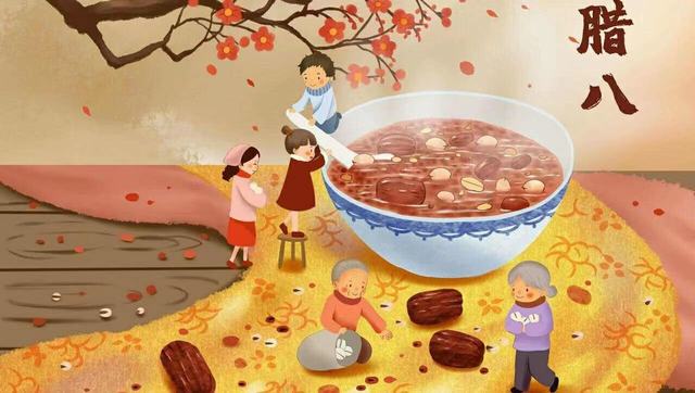 腊八节,即每年农历十二月八日,又称为“法宝节”、“佛成道节”、“成道会”等。本为佛教纪念释迦牟尼佛成道之节日,后逐渐也成为民间节日。腊八粥,又称“七宝五味粥”、“佛粥”、“大家饭”等,是一种由多样食材熬制而成的粥。南宋吴自牧《梦梁录》载:“此月八日,寺院谓之腊八。大刹等寺,俱设五味粥,名曰腊八粥。”我国喝腊八粥的历史,已有一千年以上了。每逢腊八这天,不论是朝廷官府、寺院还是黎民百姓家都要做腊八粥。到了清朝,喝腊八粥的风俗更是盛行。