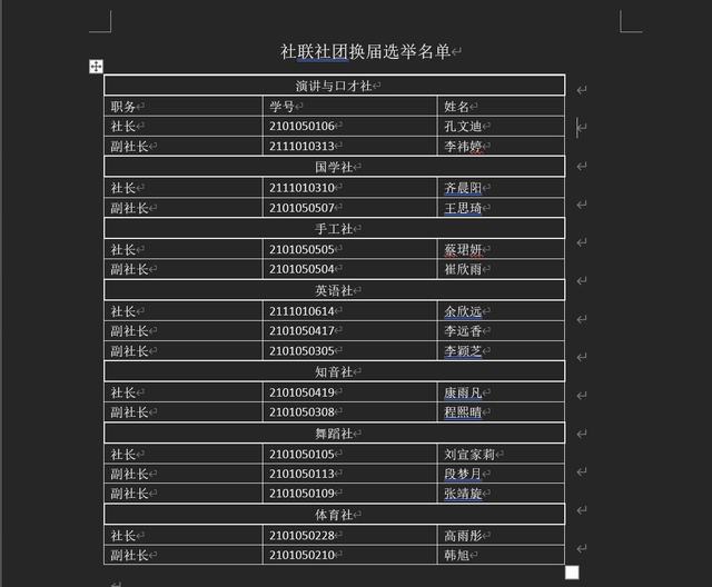 竞选结束后,老师和社长们共同讨论决定,最终各社长名单如下: