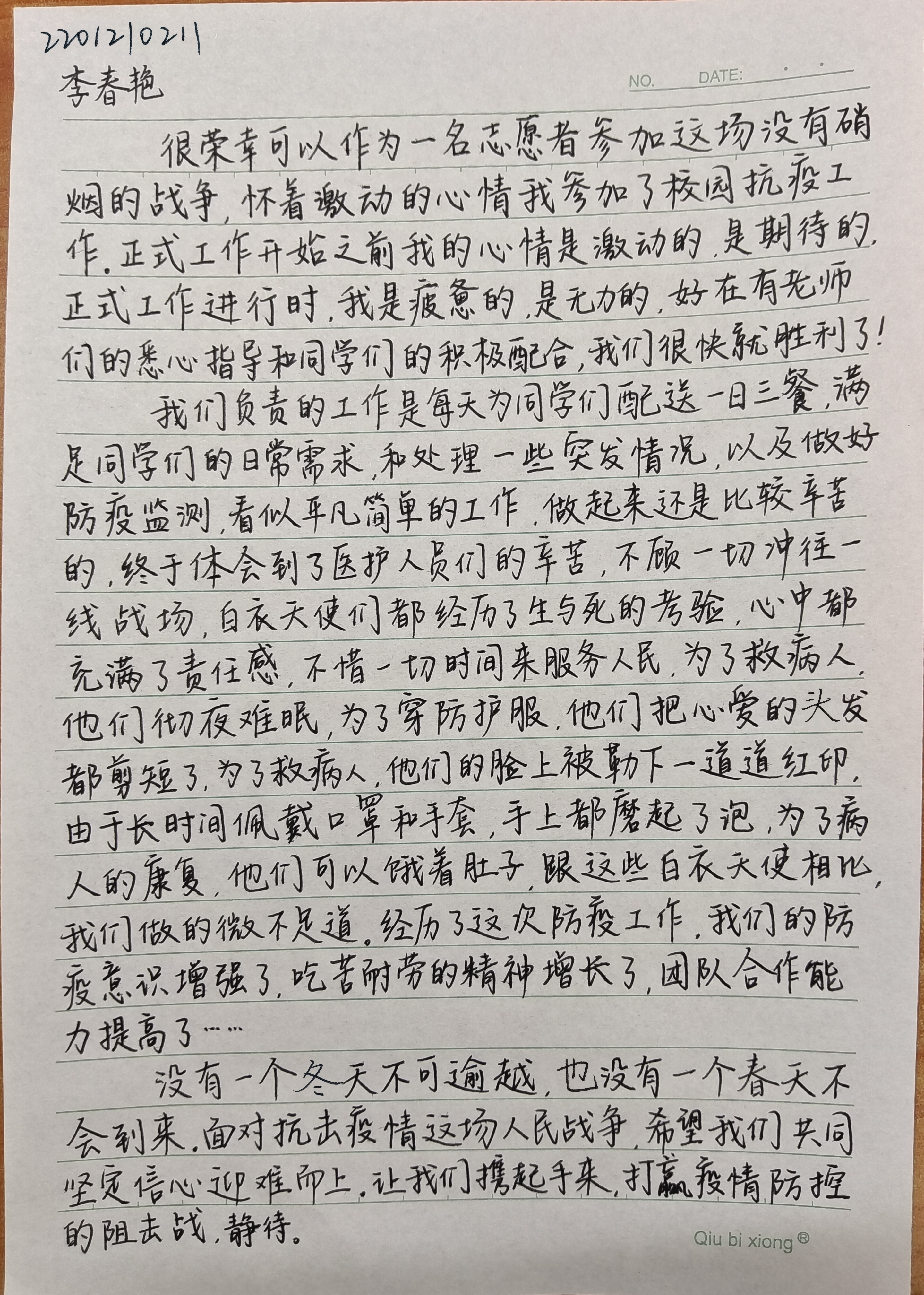 在学校和老师的带领下,学生志愿者们携手同心,为了打赢这场疫情防控攻坚战,他们贡献着自己的青春力量,让我们来聆听一下志愿者的心声吧!