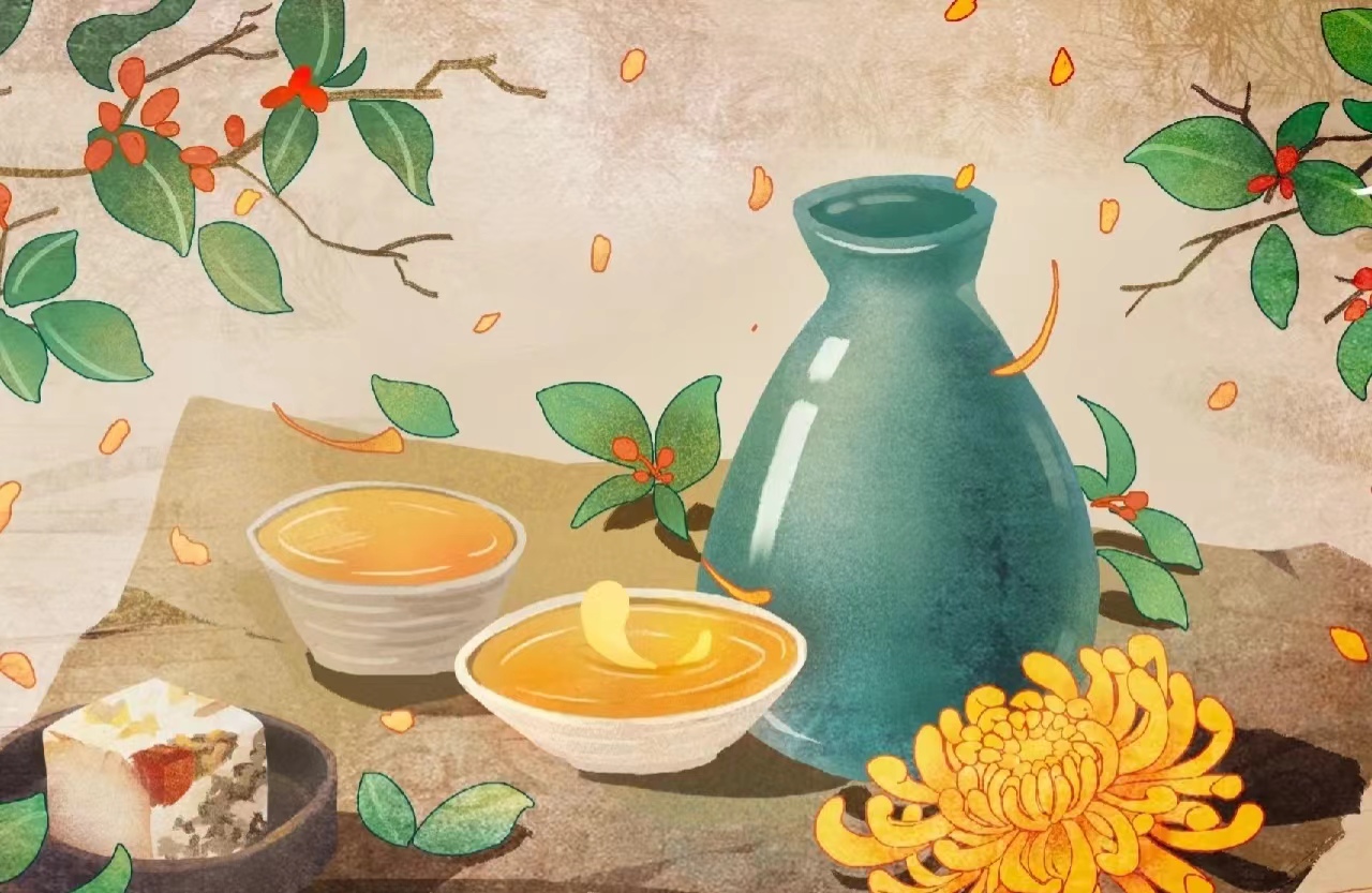 由于菊的独特品性,菊成为生命力的象征。早在屈原笔下,就已有“夕餐秋菊之落英”之句,即服食菊花瓣。汉代就已有了菊花酒。重阳佳节,我国有饮菊花酒的传统习俗。菊花酒,在古代被看作是重阳必饮、祛灾祈福的“吉祥酒”。