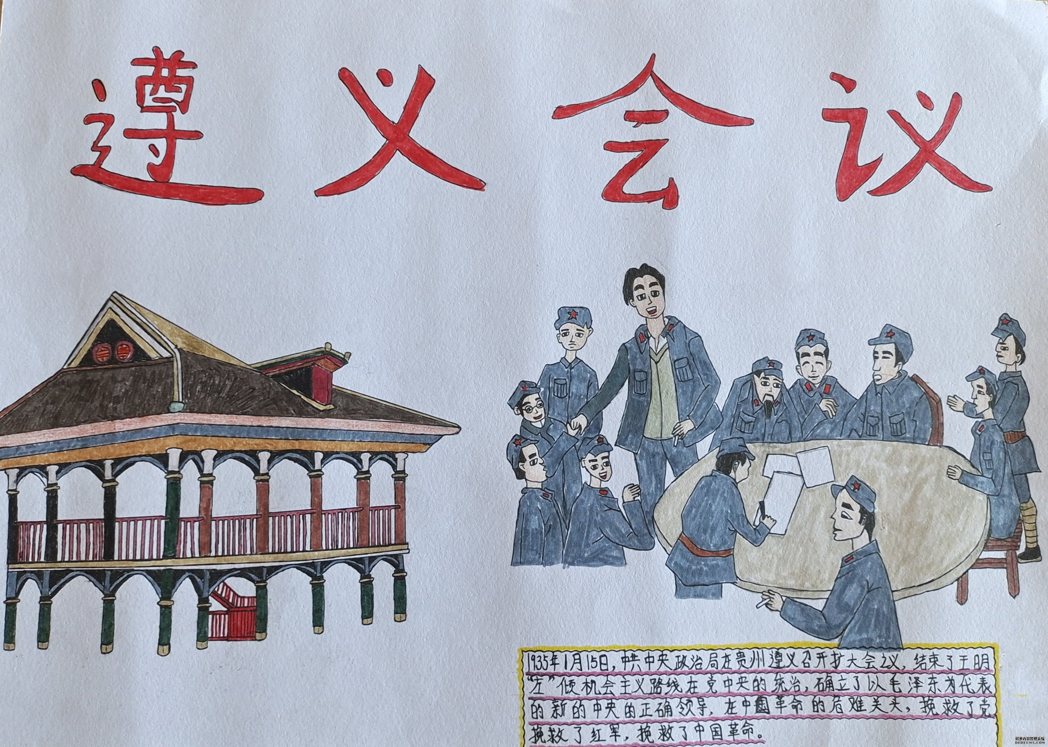 为庆祝中国共产党成立100周年,讴歌中华民族伟大复兴中国梦光辉的奋斗历程,鼓励新时代大学生追寻革命先辈的光辉足迹,发扬“使命在肩、奋斗有我”的精神,学前与小学教育学院特举办“党建专栏——故事里的中国”活动,本期专栏主要讲述遵义会议,主要参赛作品类别为绘画。
