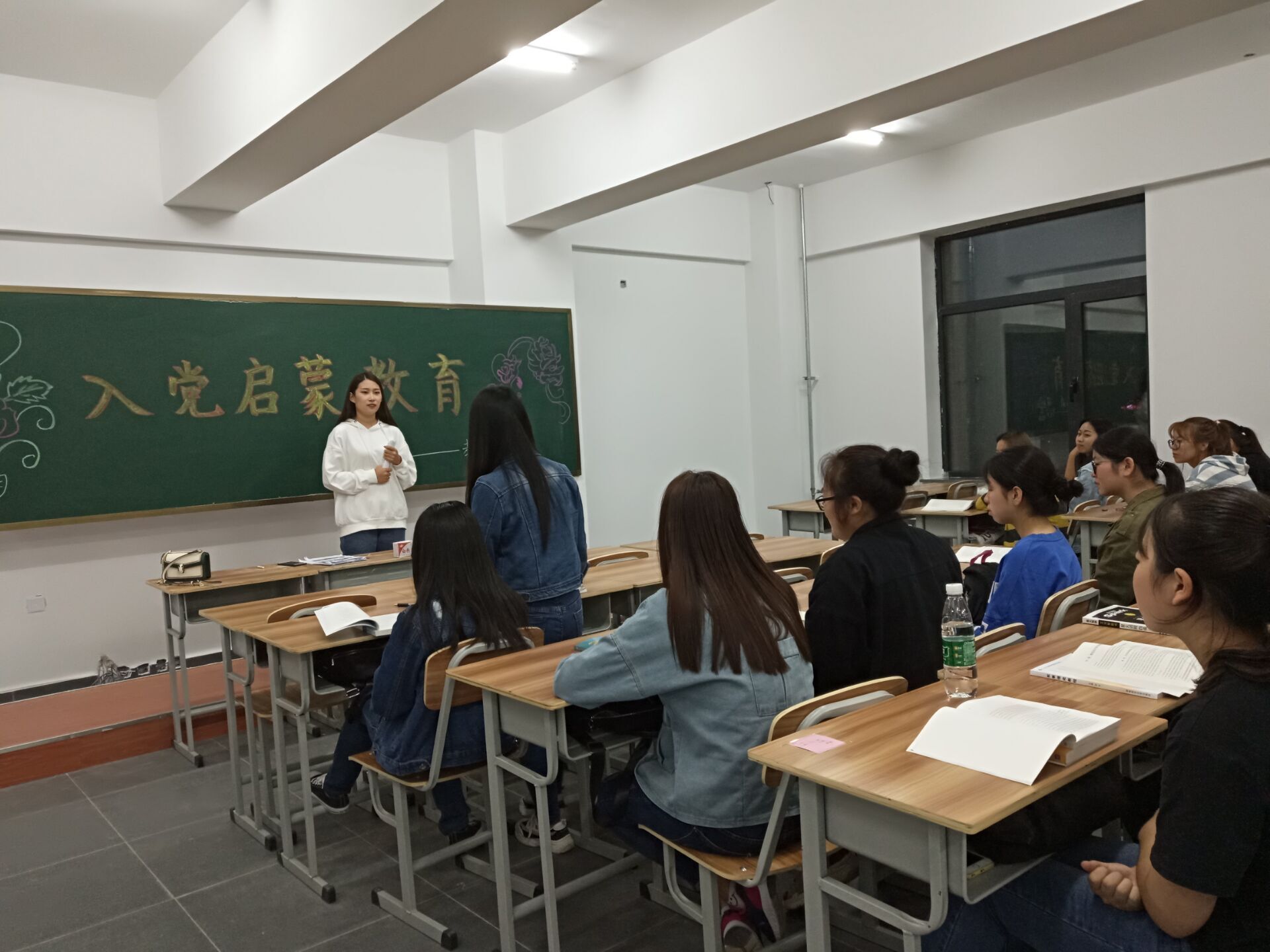 2018年9月5日18时30分,我系在1323教室召开入党启蒙教育大会,此次会议由分团委副书记张丹主讲,意在对2018级新生进行入党启蒙教育。