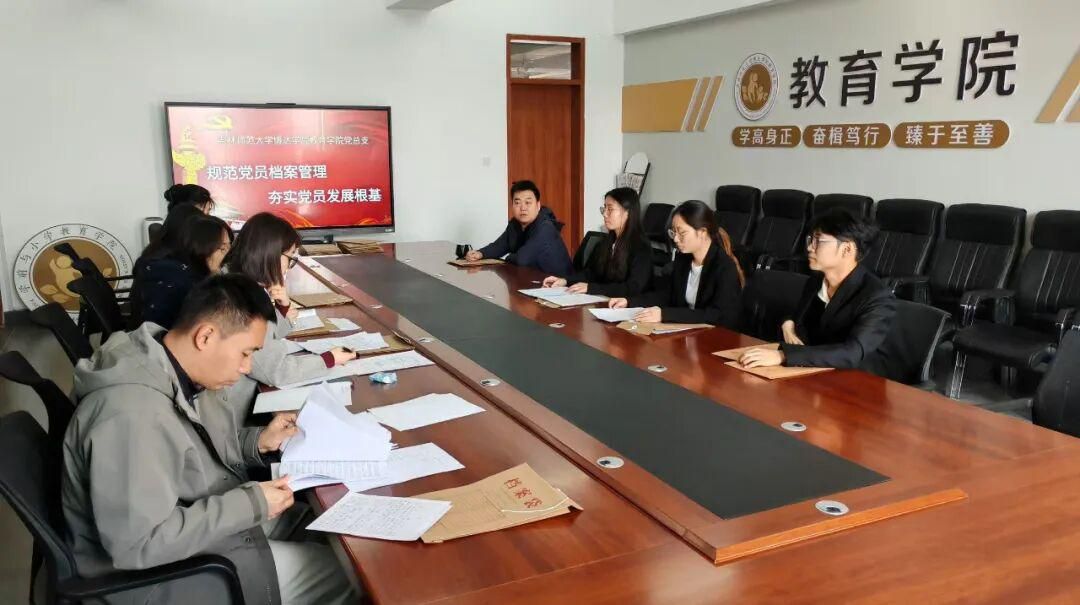 为进一步规范各党支部党员档案管理工作,提升支部负责人的业务能力与工作效率,教育学院于2026年4月2日14:00在综合楼1309会议室召开“规范党员档案管理,夯实党员发展根基”专题会议。本次会议由党总支书记汤鹏宇老师主持,教师支部书记贺琳娜老师、学生第一支部书记马金铭老师、学生第二支部书记高馨老师、辅导员王一波老师、辅导员刘皓源老师共同参与本次会议。