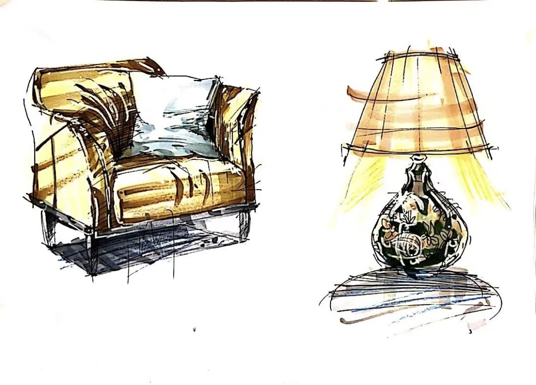 二等奖作品:手绘表现技法-家装单体的绘制:手绘表现是方案推敲思考的一个过程,在仿生方案设计的最初的是模糊的,不稳定的。面对设计思考过程中转瞬即逝的灵感,通过快速的手绘把这些灵感描绘下来,从而不断产生新的灵感创意。
