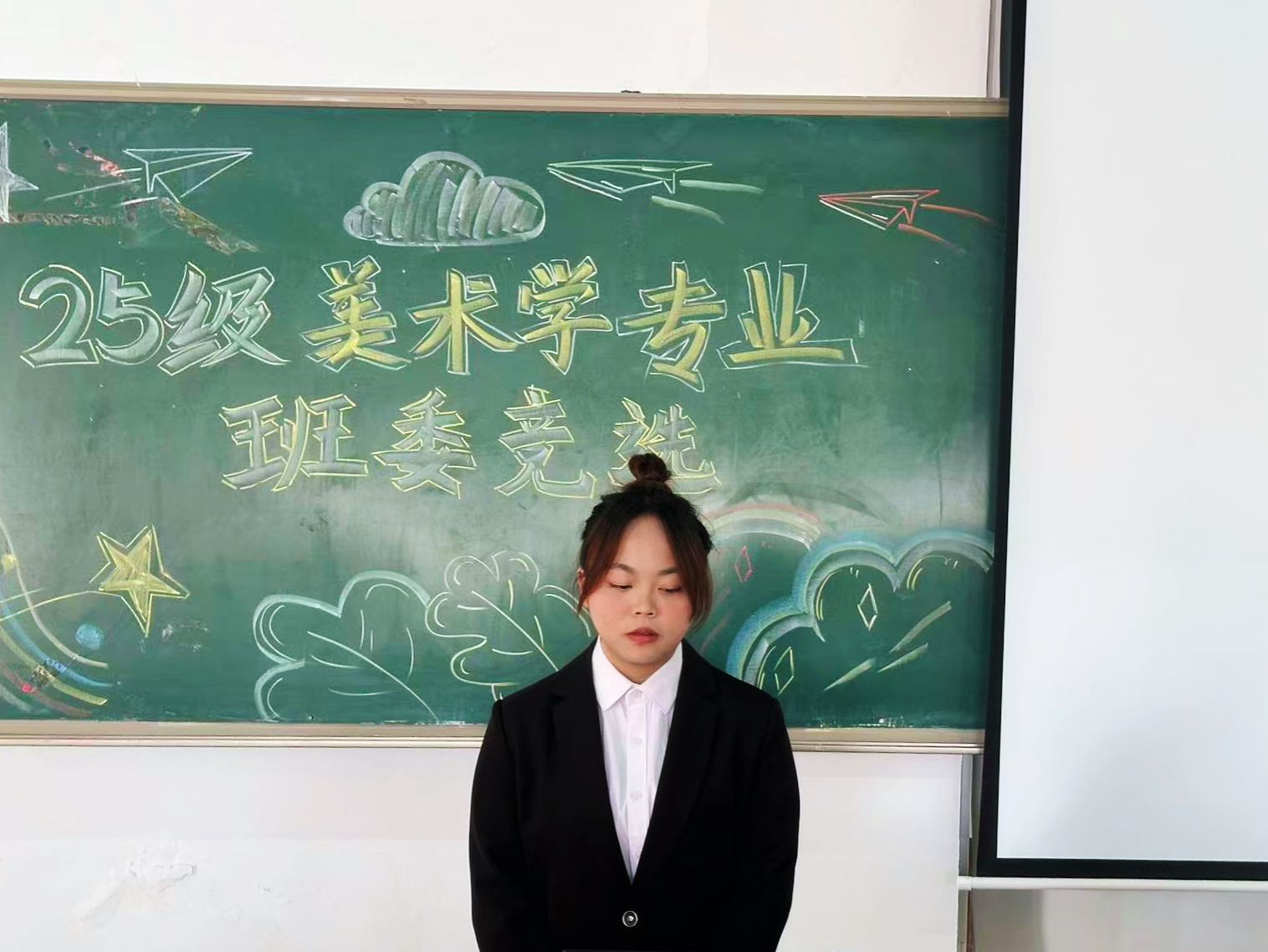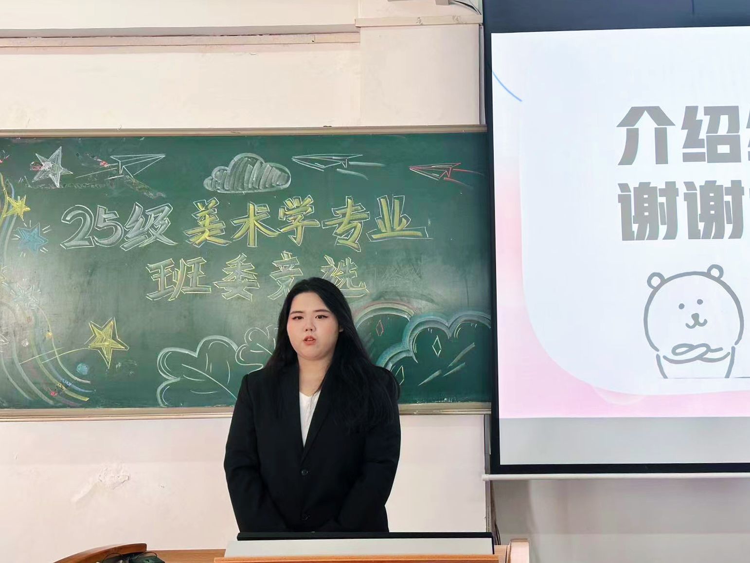 乘风破浪,正当其时。为营造积极向上的学习氛围、提升班级事务管理效率,艺术学院于10月23日与10月24日在第一教学楼1501教室顺利举办了2025级班委竞选活动。出席本次选举活动的有学工办副主任张维老师、辅导员王占利老师、李睿琦老师、兼职辅导员王可心老师、行政助理谭宜杭学长以及团学联各部门主席和各专业大班代。此次活动为选拔出具备责任心与领导力的班委团队,为班级建设注入新的活力。