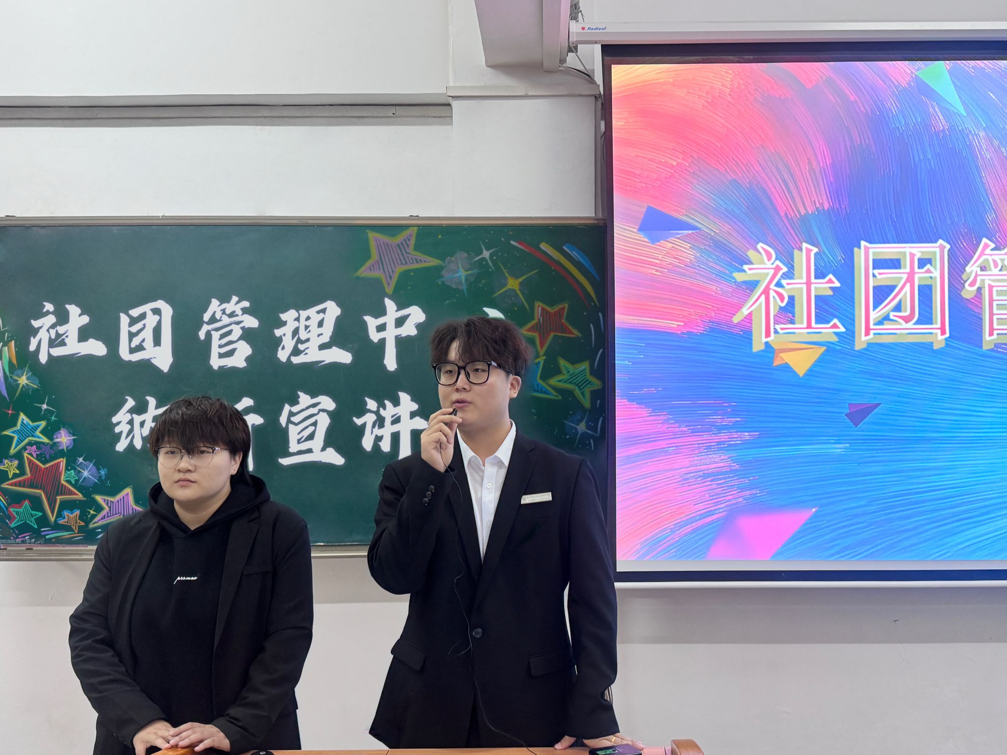 为了营造积极向上的校园文化氛围,充实社团管理中心人才力量,助力艺术学院社团工作高质量开展,11月12日,艺术学院在老校区第一教学楼1501教室举办了社团管理中心纳新宣讲活动。此次宣讲活动由社团管理中心主席刘旭东与副主席李艾潼共同主持,社联各部门部长、成员与2025级全体同学参加。