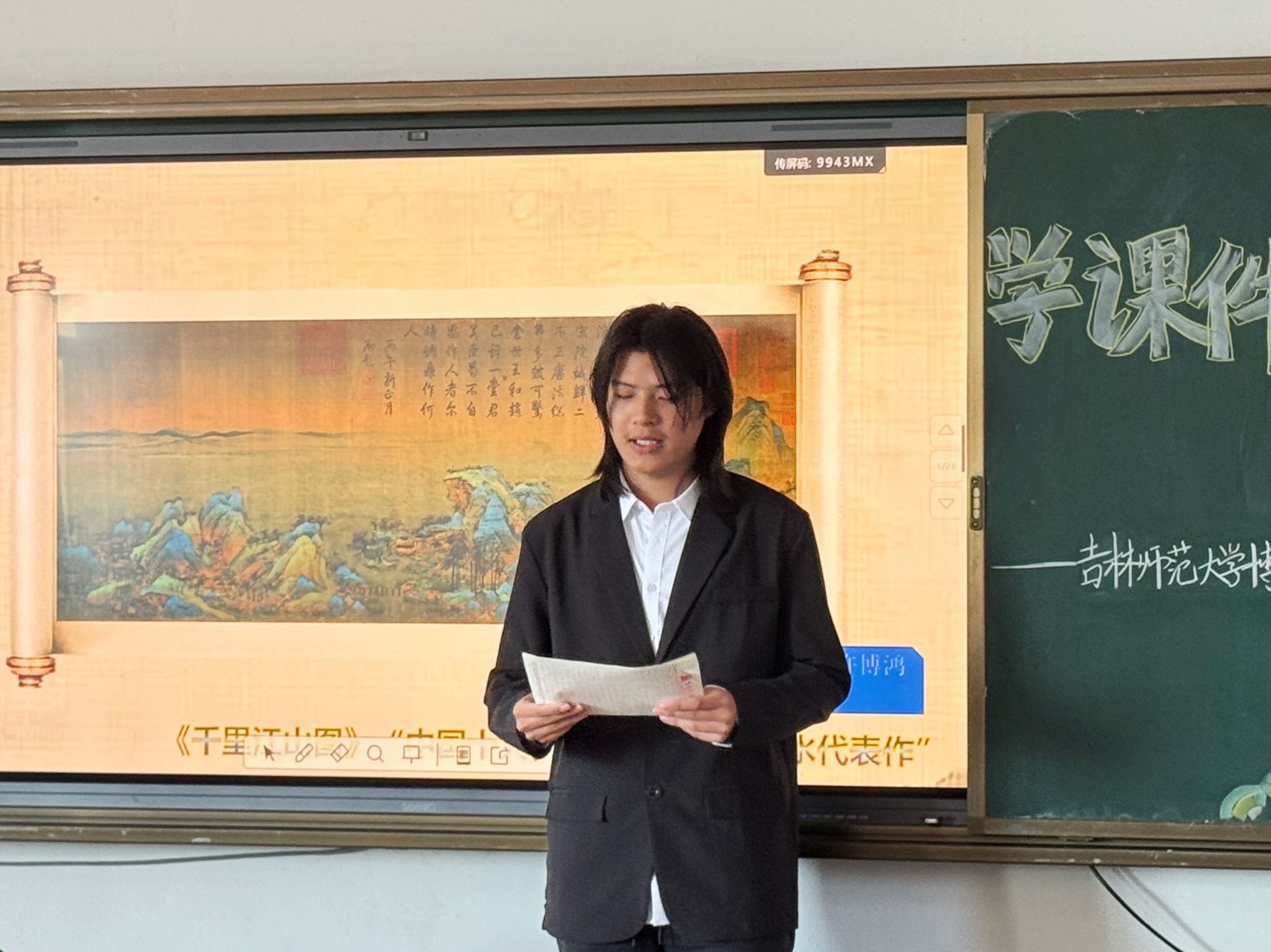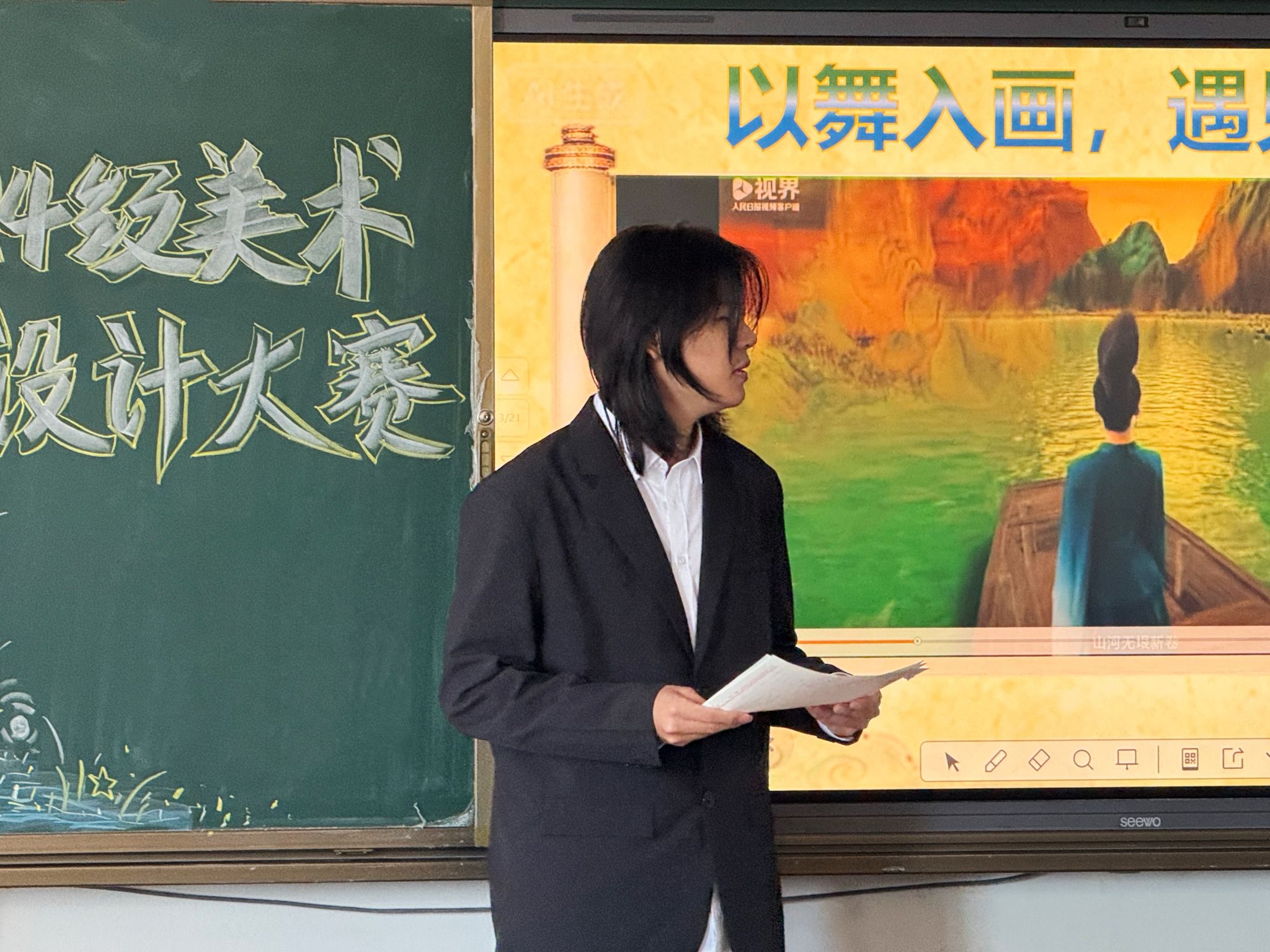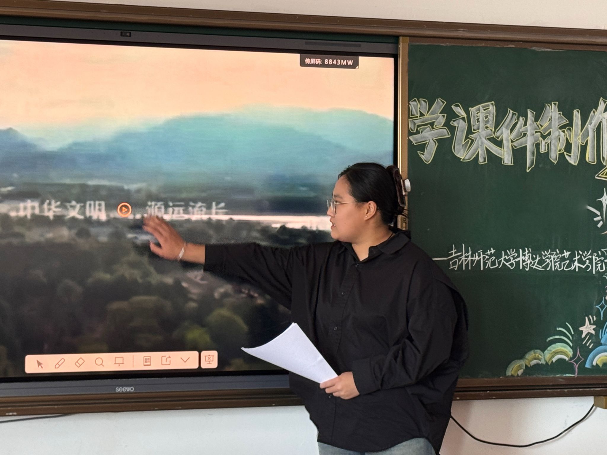 在比赛中,24级美术学专业学生依次上台展示自制课件,内容涵盖美术史论、技法解析与创作实践。部分作品还大胆尝试了动画、交互设计等跨专业创新手段,视觉效果新颖,充分体现了学生对专业知识的掌握和技术应用能力。