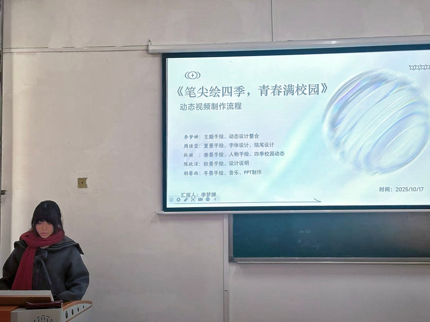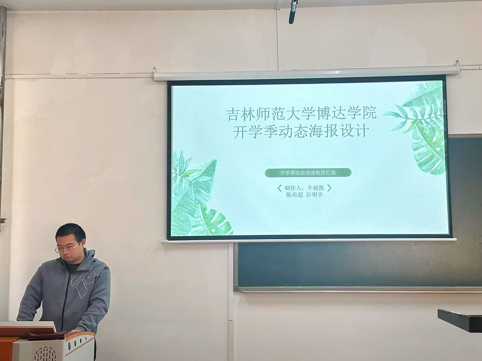 10月30日,大赛初赛在老校区第一教学楼1418教室正式拉开帷幕。艺术学院院长潘宝泉教授、副院长刘松松副教授、视觉传达专业主任郑曼姝老师及专业教师朱瀚鹏老师组成评委团,对23级视觉传达专业全体学生组成的10支参赛队伍进行专业评审。