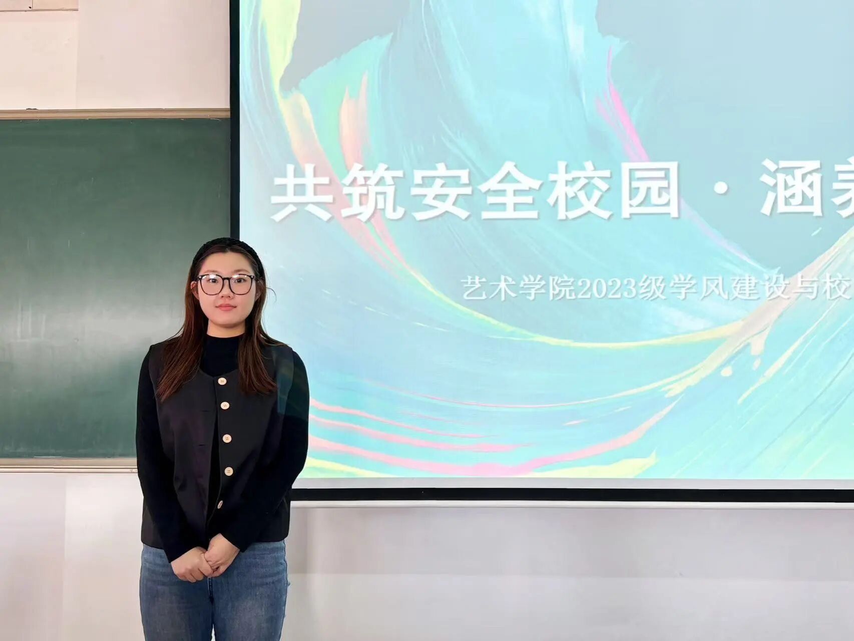 为落实校园管理相关要求以及学生安全,艺术学院于2025年11月14日在学院1501教室召开校园安全教育大会,会议由学院辅导员李睿琦老师主持,2023级全体学生参加了此次会议。