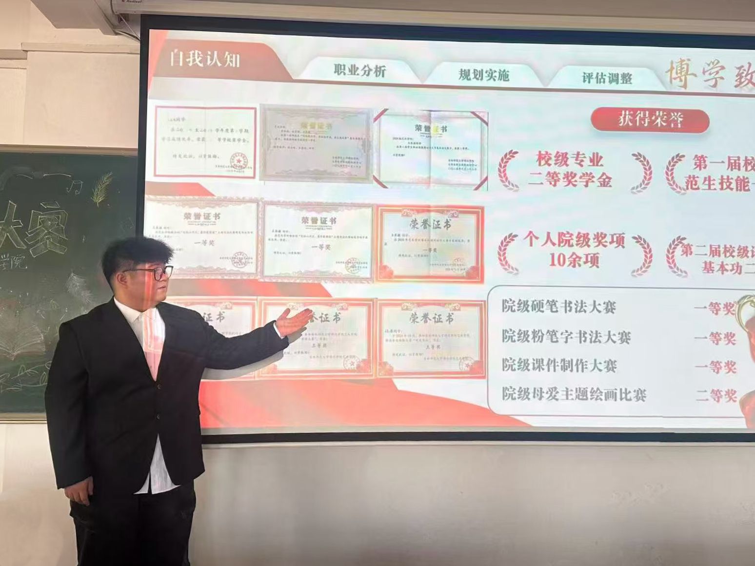 为了营造职业规划、助力学子明晰成长路径的氛围,切实提升学生职业素养与就业竞争力,2025年11月20日艺术学院于老校区1501教室举办大学生职业规划大赛。出席本次比赛的有副院长刘松松副教授、学工办副主任张维老师,辅导员王占利老师、李睿琦老师、兼职辅导员李泽老师、王赟老师、王可心老师,行政助理谭宜航以及各位参赛选手。