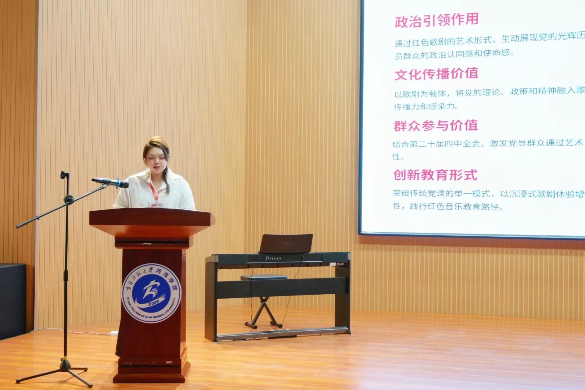 为深入传承红色基因,丰富高校党建活动形式,2025 年 11 月 28 日,吉林师范大学博达学院艺术学院特邀沈阳音乐学院研究生会同学作为表演嘉宾,在体育馆报告厅举办 “艺韵淬经典,红心映征程” 主题党日活动。双方以艺术为纽带,在声韵与旋律的交融中重温红色岁月,在交流互动中凝聚信仰力量,为青年党员教育打造了一场兼具思想性与艺术性的文化盛宴。