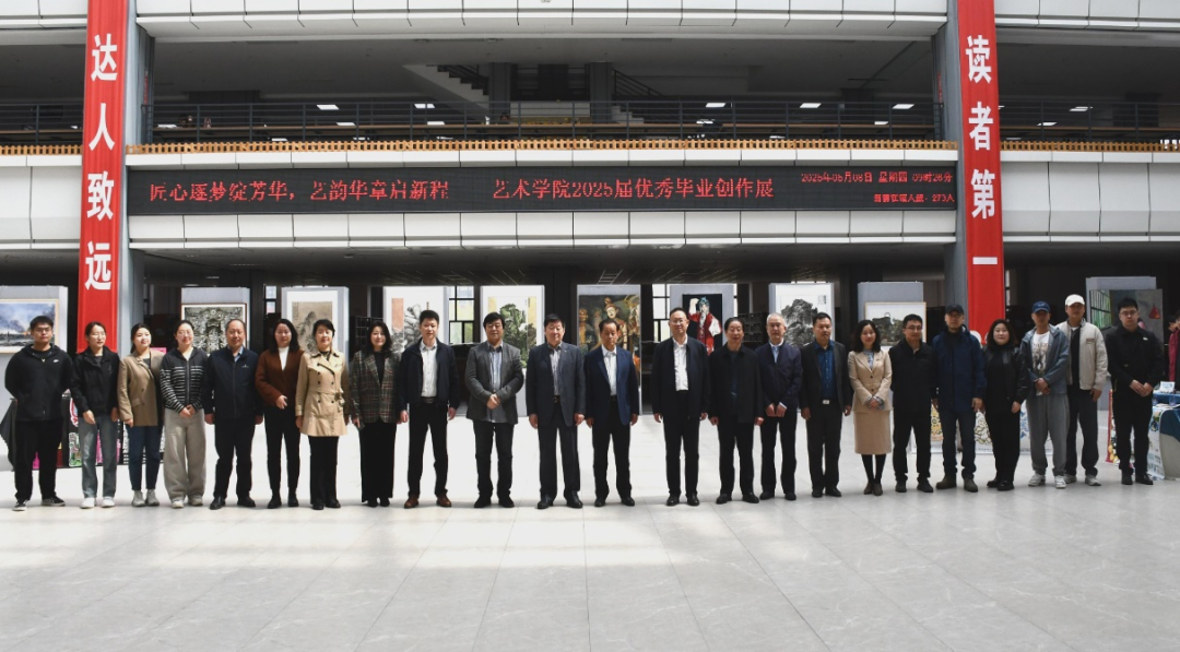 2025年5月8日上午9时,在吉林师范大学博达学院图书馆一楼,艺术学院精心筹备的 “匠心逐梦绽芳华,艺韵华章启新程”——2025 届优秀毕业创作展开幕。学校党委书记周树军、执行校长王国军、党委副书记李莹、副校长肖利、副校长张宏源以及各职能部门负责人、艺术学院师生代表等参观了本次展览。