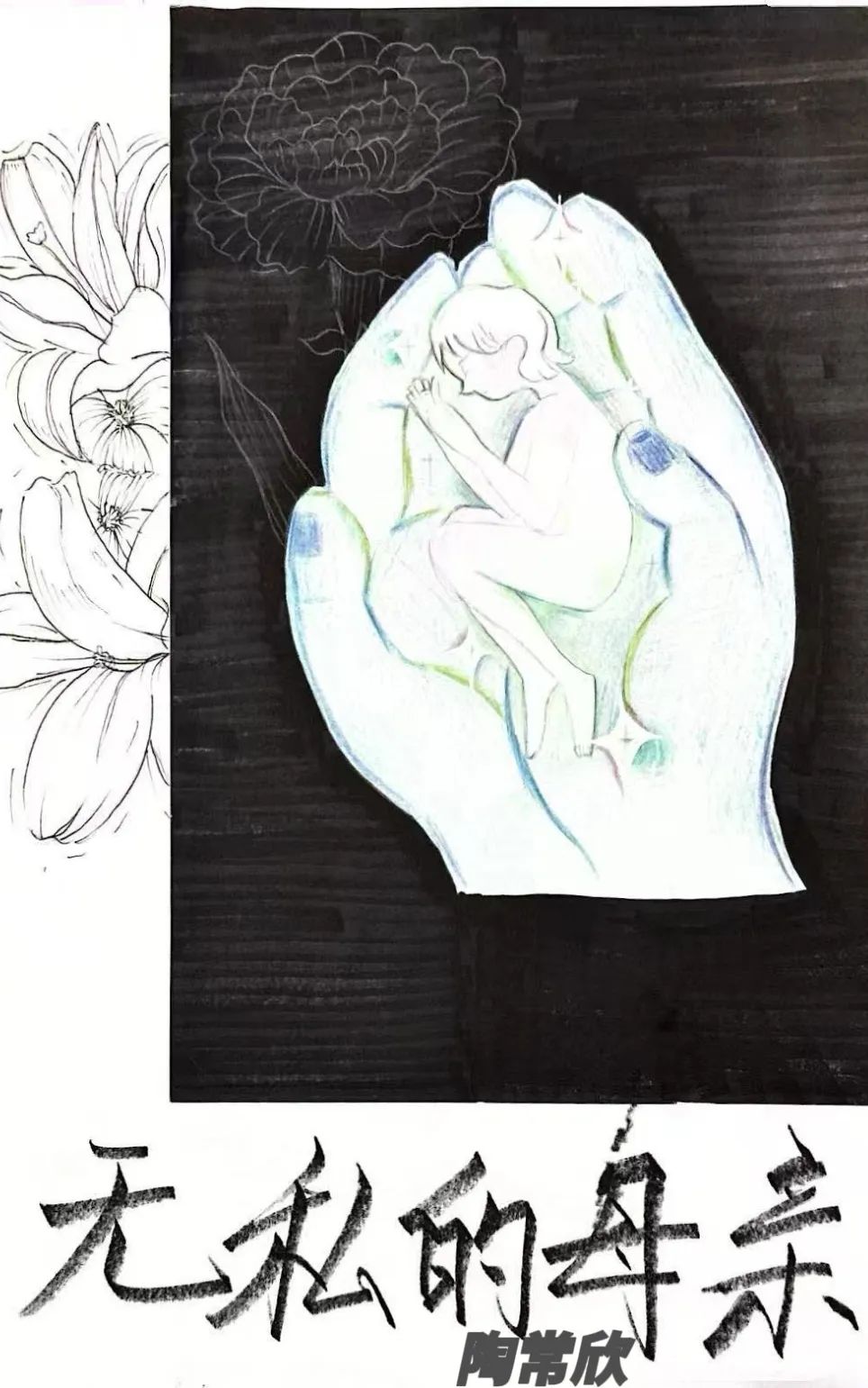 硬笔字作品以经典母爱颂文为载体,依托楷书、行书等传统书体,通过严谨的笔画结构与章法布局,彰显汉字形意相生的美学意蕴。黑板字书法作为师范生必备教学技能,以工整美观的板书设计展现未来教师的专业素养。手绘作品运用水彩、马克笔等创作媒介,通过细腻的线条勾勒与色彩渲染,实现中式传统亲情元素的现代表达。海报设计聚焦数字化创作手段,以创新性视觉语言构建母爱主题的跨时空对话。