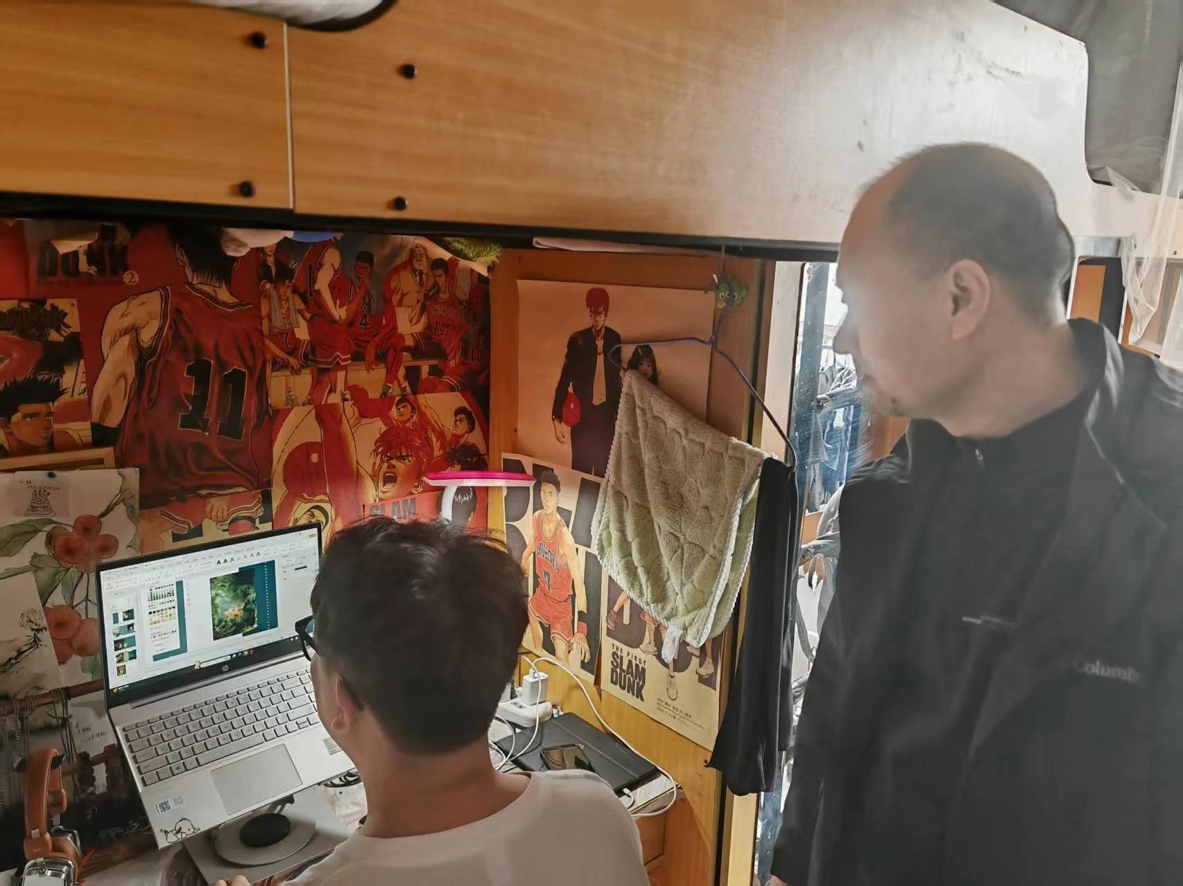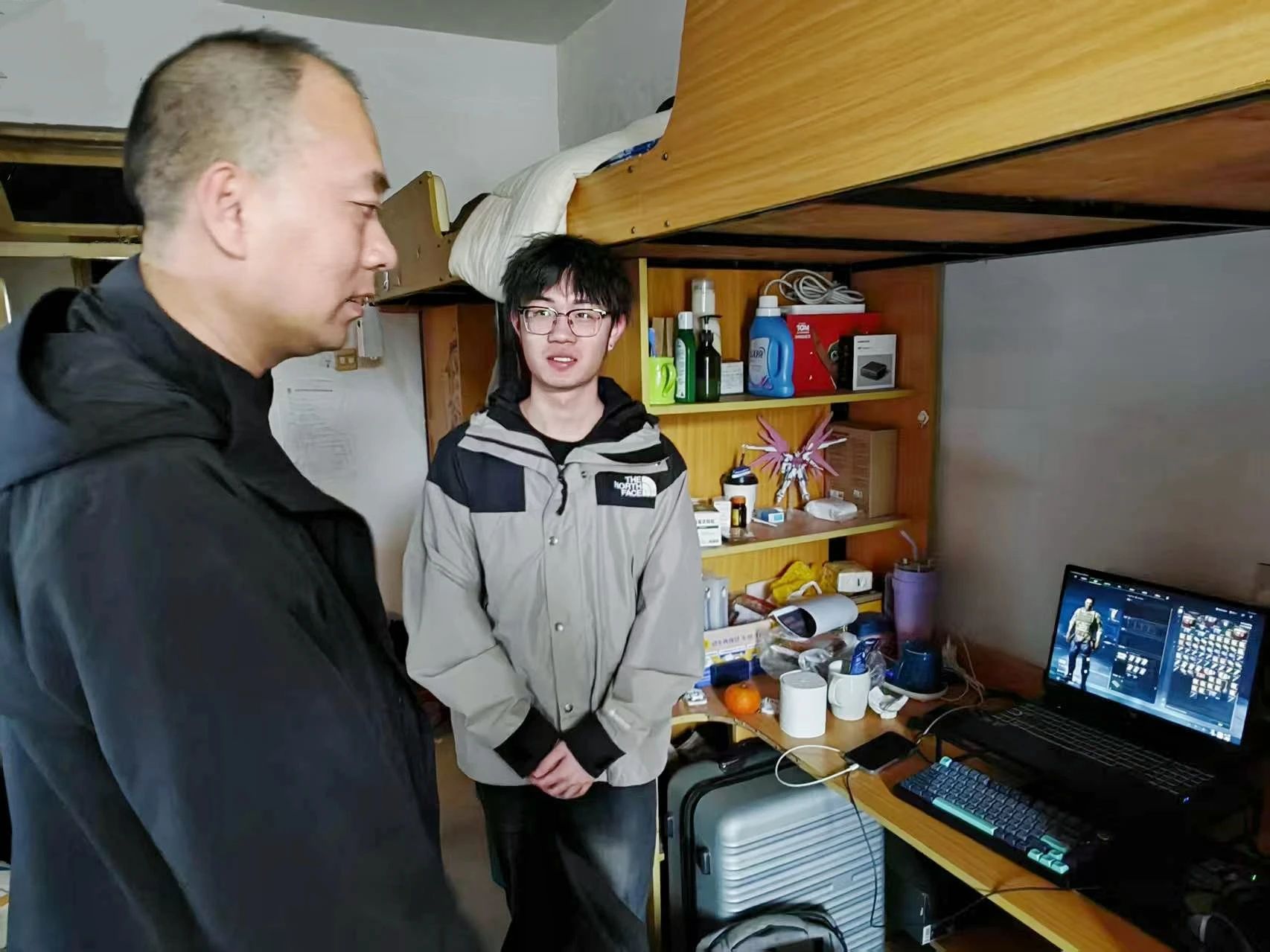 王占利老师则与同学们亲切交流假期安排,提醒外出回家的同学注意人身和财产安全、留校的同学遵守宿舍作息制度,每天晚上按时归寝,不得夜不归寝,临时外出及时向老师请假。针对个别寝室内务杂乱、插线板缠绕等问题,老师现场指导整改,并强调安全隐患。