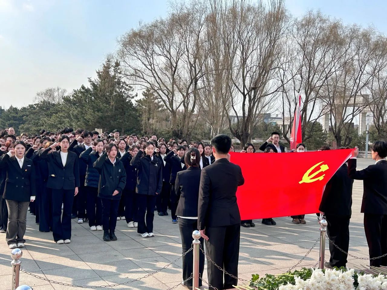 为深切缅怀革命先烈、传承红色基因、厚植爱国情怀,在清明节来临之际,吉林师范大学博达学院艺术学院学生党支部于2025年4月2日下午组织全体学生党员及部分入党积极分子代表,赴四平烈士陵园开展"承四平英烈志,扬党员先锋行"主题党日活动。