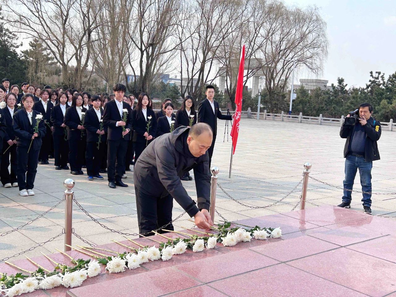 一个个鲜活的英雄形象、一段段催人泪下的历史,让在场师生深受触动。随后,全体师生依次向烈士敬献鲜花,表达深切哀思。