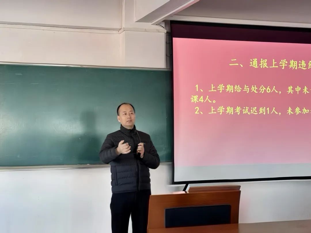 会议伊始,王占利老师围绕学业发展规划提出三点要求:一是明确学习重点方向,制定科学学习计划;二是重视学历提升,鼓励通过考研、专升本等途径增强竞争力;三是强化学风建设,要求端正学习态度、严守校规校纪。