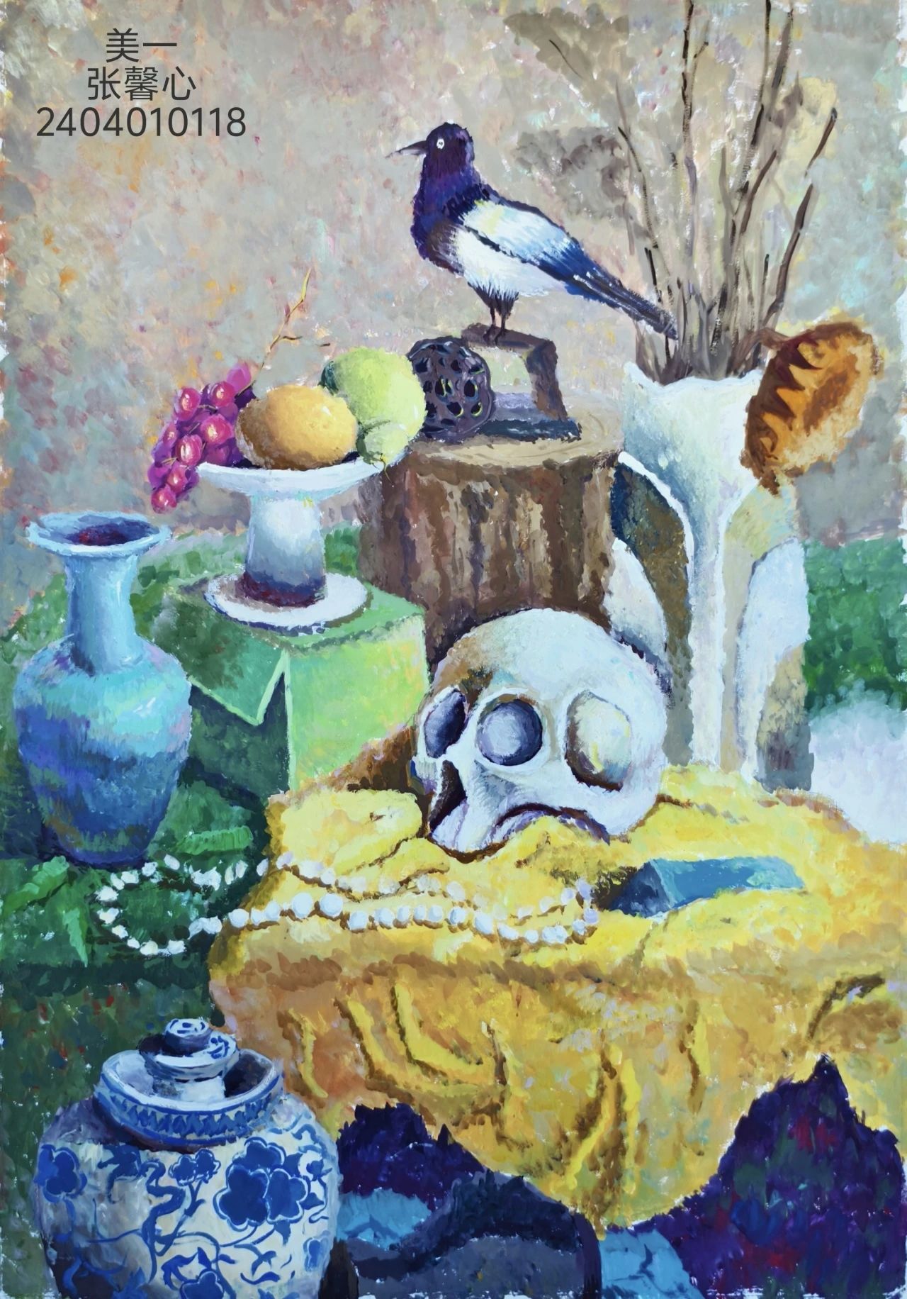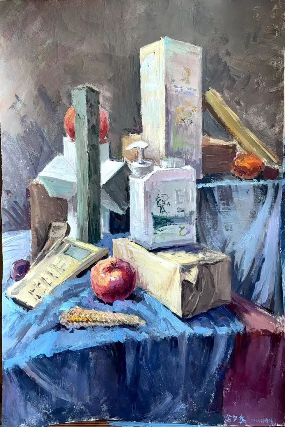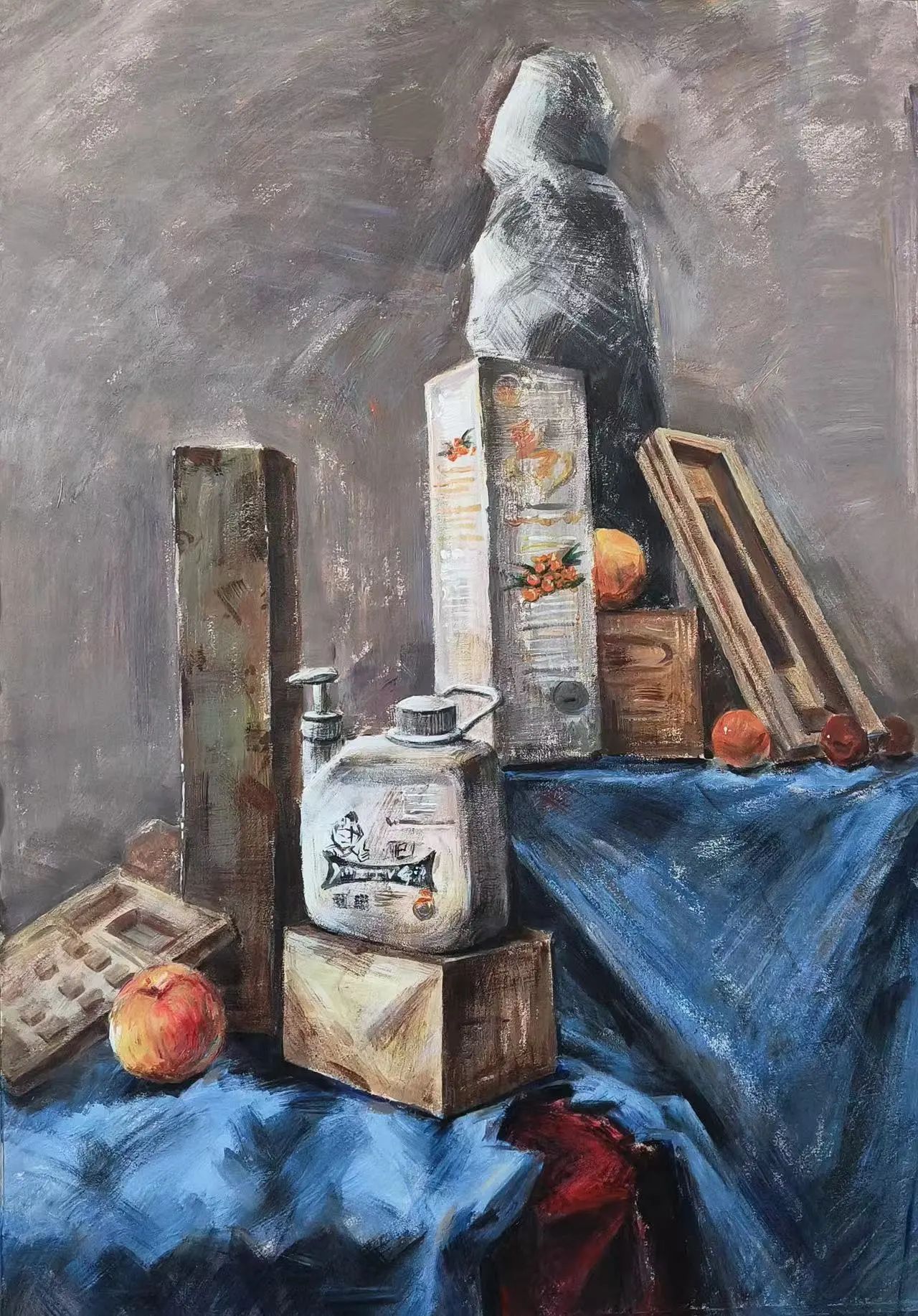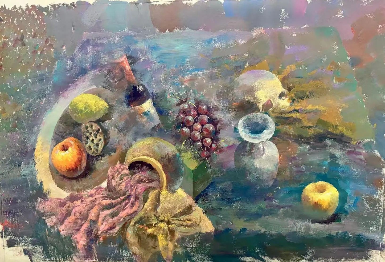 本次作业训练旨在提升学生对色彩基础知识的理解与应用能力,激发其色彩感觉与表达潜力。作品命题为《色彩静物》,要求学生通过系统运用所学色彩理论与技巧,进行综合性的色彩创作实践。学生需广泛收集和整理色彩相关资料,深入分析色彩在不同环境和情境中的表现与意义,挖掘色彩的内在联系与协调规律。通过色彩构成与搭配,学生将以色彩为主要表达手段,创作出既具科学性又富有艺术性的作品,展示对色彩基础知识的掌握和创新应用能力。此次创作实践不仅注重色彩的准确运用与和谐搭配,还鼓励学生突破传统思维,探索色彩的新组合与表现形式,使色彩在作品中焕发出新的生命力与表现力。通过这一过程,学生将在实际操作中深化对色彩基础的理解,提升其色彩感知与应用水平,培养出独特的色彩审美和设计风格,为今后的基础美术专业教学工作打下坚实的基础,同时激励学生在色彩的世界中不断探索与创新,追求卓越的设计成果。