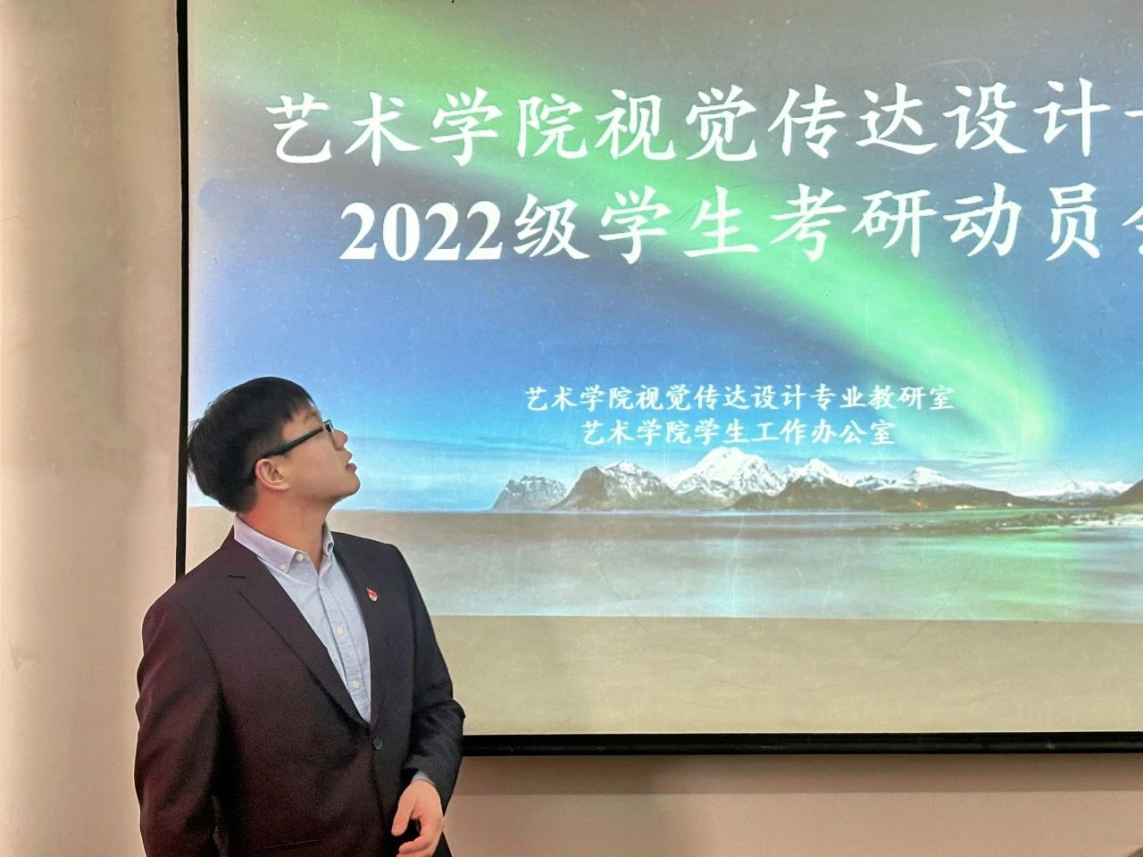 为鼓励学生积极参加考研,艺术学院视觉传达设计专业于2024年12月6日14:00在老校区第一教学楼1417教室举行考研动员大会。本次大会由李嘉琦老师主讲,艺术学院学工办副主任毕云龙老师和院长助理兼美术学专业负责人李艳花副教授,视觉传达设计专业负责人刘寅凯副教授,视觉传达设计专业苏畅老师、朱瀚鹏老师、郑曼姝老师及视觉传达设计专业22级全体同学出席。