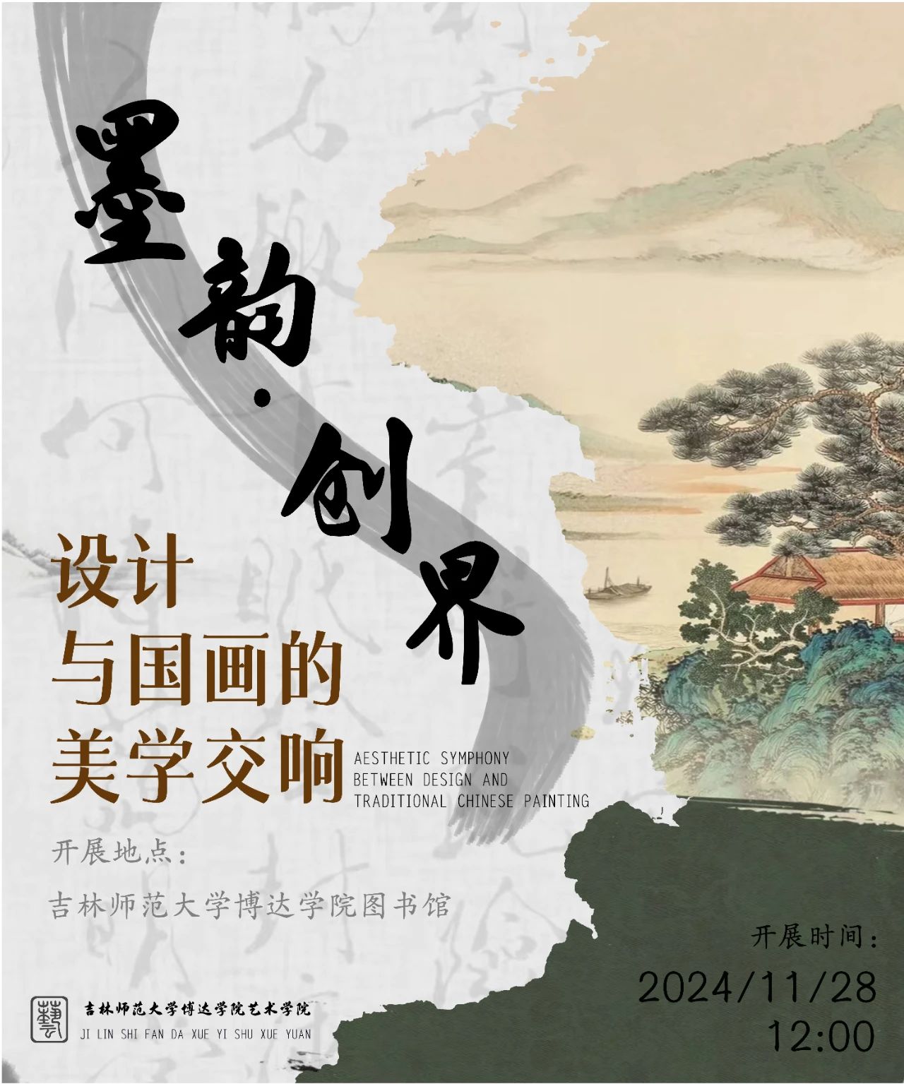 为搭建起传统美学与现代设计之间的桥梁,实现跨越时空的艺术对话。11月28日中午12:00,由吉林师范大学博达学院艺术学院主办、图书馆承办的“墨韵·创界:设计与国画的美学交响”2024年艺术学院期末优秀作业展在图书馆二楼大厅拉开帷幕。