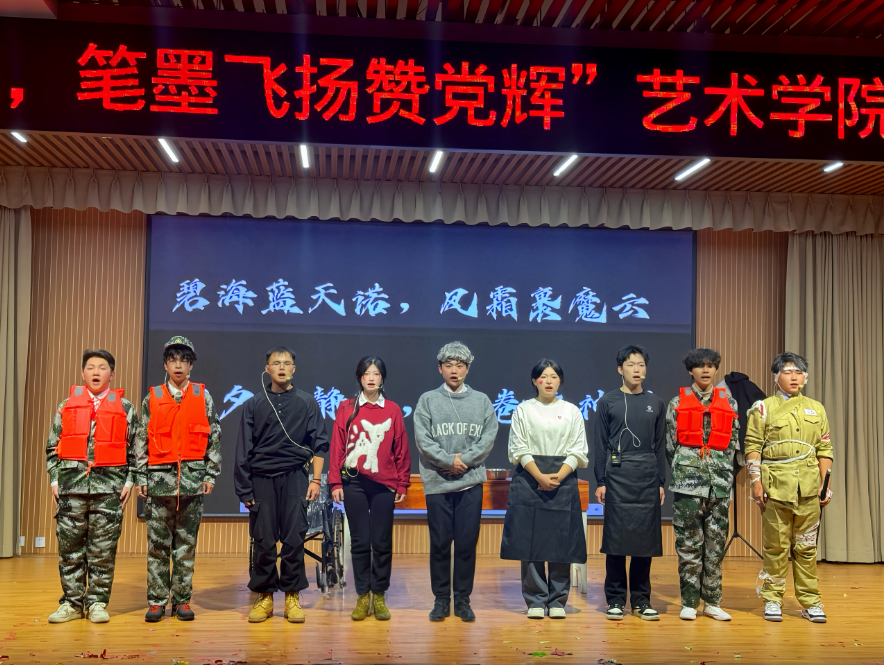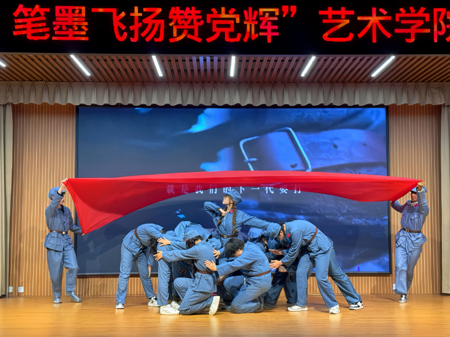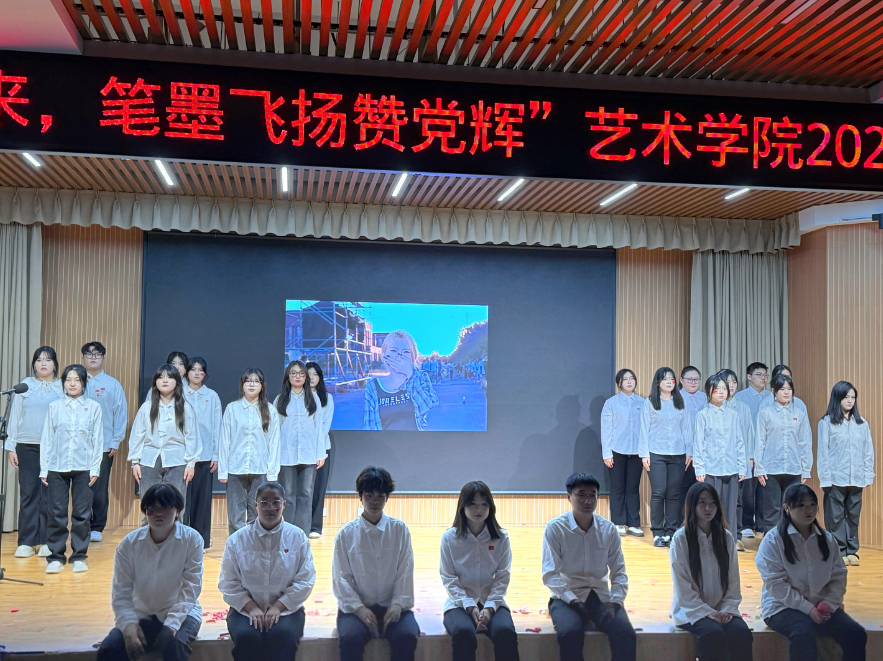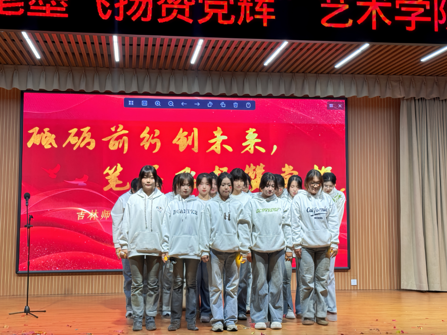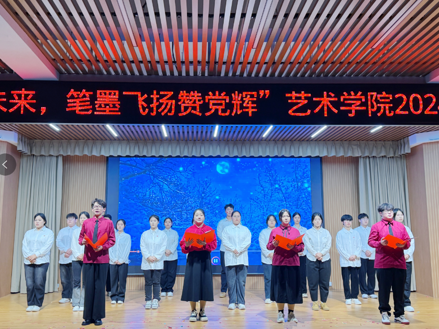 党的百年奋斗开辟了实现中华民族伟大复兴的正确道路。为深入开展学习贯彻习近平新时代中国特色社会主义思想主题教育,贯彻落实党的二十大精神,传承红色优良传统,艺术学院学生党支部于2024年12月1日下午18:30在图书馆一楼报告厅举办“砥砺前行创未来,笔墨飞扬赞党辉”艺术学院2024年主题党日活动。