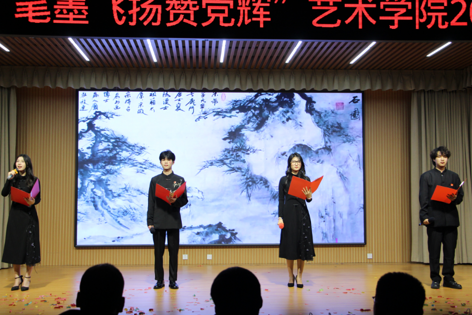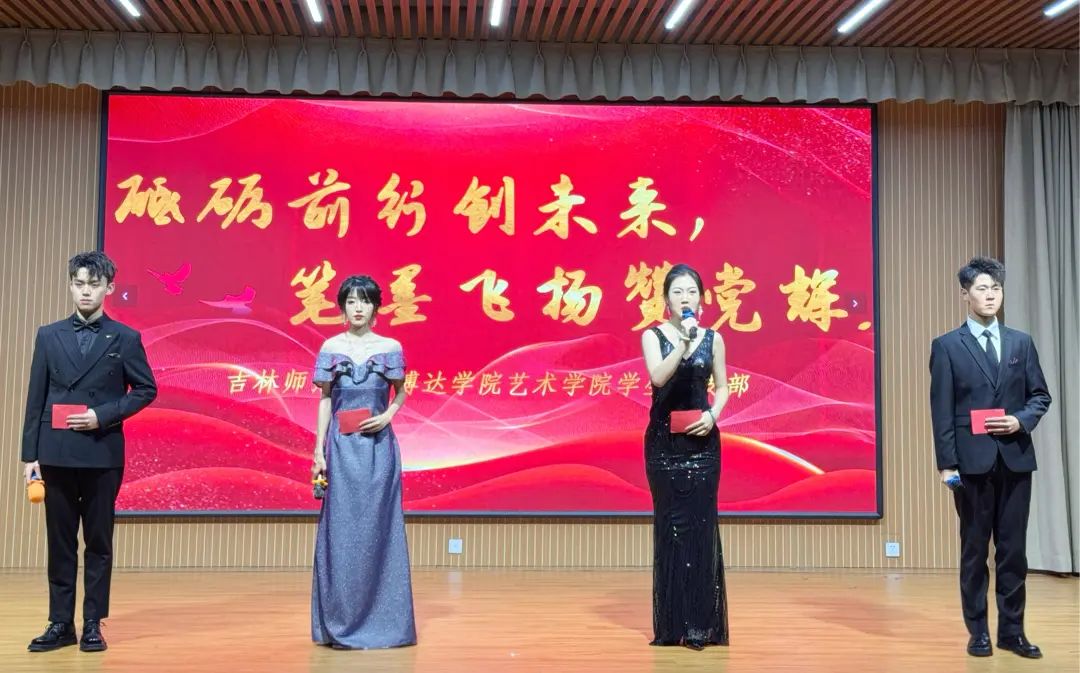 出席本次晚会的有艺术学院党总支书记兼学生党支部书记毕云龙老师,艺术学院辅导员王占利老师,教师代表李天阁老师,行政助理王宇学姐,团学联学生干部及24级全体学生。本次活动由罗俊、景仕祎、季佳兴、卫丹仪主持。