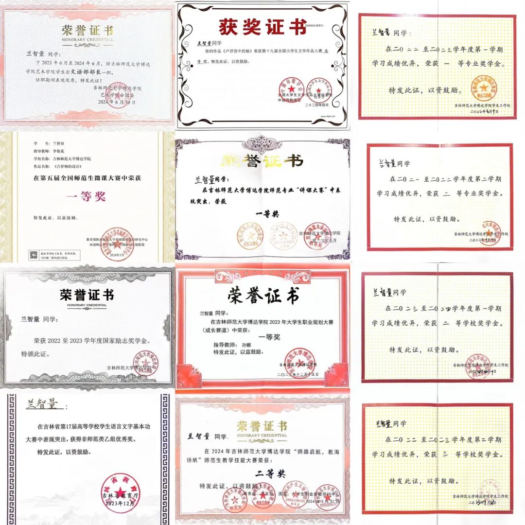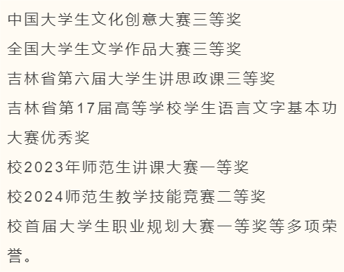 2021年有幸与艺术学院相识,开启了我的师范生四年之旅。本科期间我多次参加学校和学院举办的师范生教学技能大赛。在2023年我参加了学校师范专业讲课大赛并荣获全校第一名,一等奖。2023年年末我开始准备第五届全国师范生微课大赛,荣获了全国一等奖。今年八月我再次参加学校2024年师范生教学技能大赛并代表全体选手接受四平市电视台采访。在今年我也通过了国家教师资格考试,已获取中学美术教师资格。