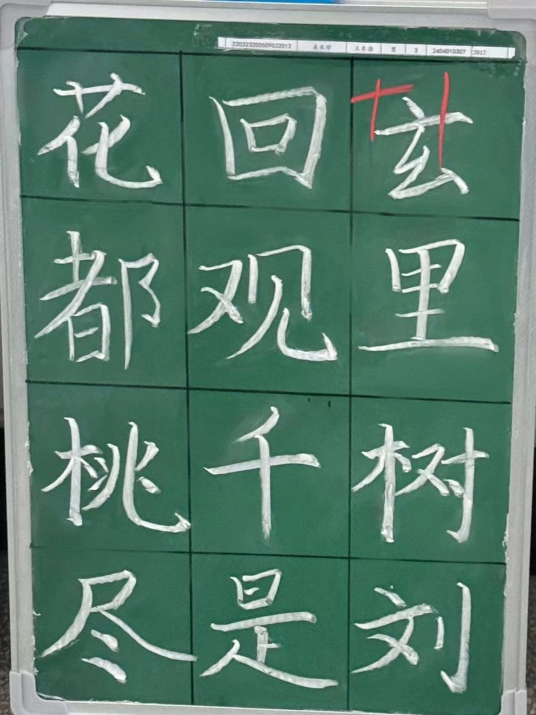 笔尖轻触黑板,如同琴弦被拨动,奏响了一曲关于智慧与传承的乐章。通过练习粉笔字,能够掌握板书设计的精髓,将文字与图像完美结合,使未来教学课堂板书更加生动、有趣,从而吸引学生的注意力,提高教学效果。