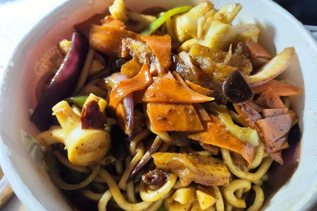 铁锅焖面 土豆绵软 入味的排骨和豆角 每根面条裹满了汤汁~