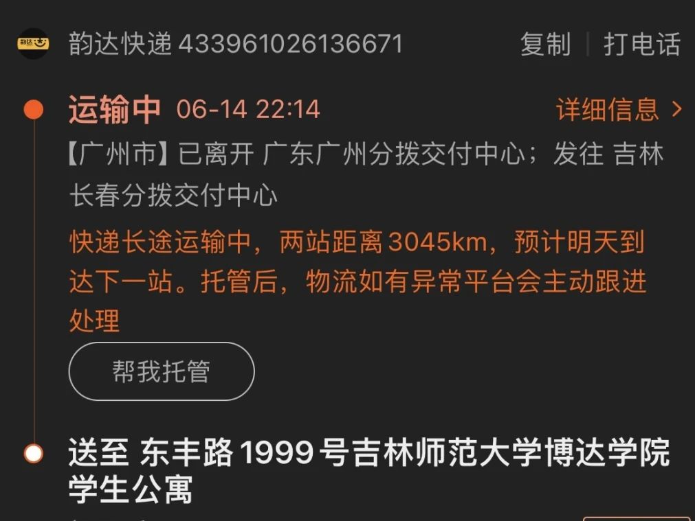 1.寄往校内:同学们在开学前记得仔细整理行李,不要落下物品,寄往博达收货地址。确认到货后,开学为高峰期,可以错峰早一点取回你们的物品啦。
