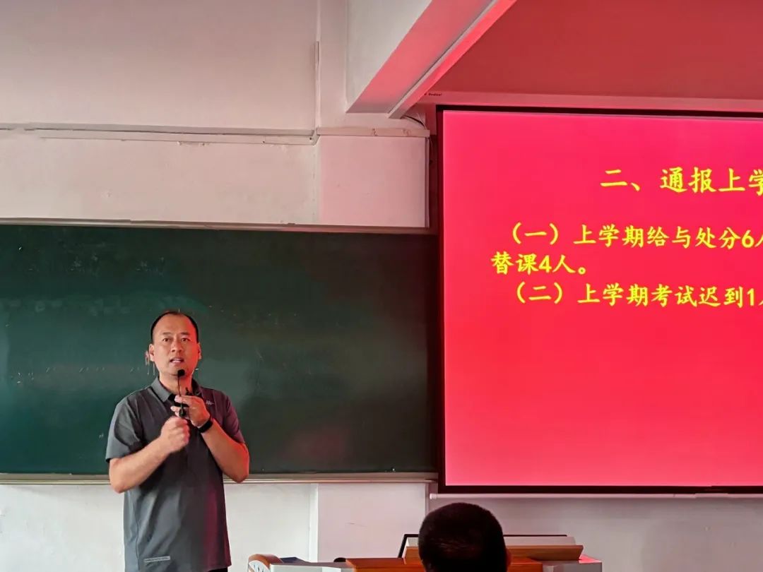 随后,王占利老师回顾了上一学期在纪律教育方面所发生的问题,强调了纪律安全的重要性与考勤制度,并对交通安全、防诈骗安全教育再次进行强调。王占利老师鼓励大家遇到困难及时和老师沟通,共同探寻解决方案。会议最后,王占利老师希望全体同学能够在本学期合理分配时间精力,摆脱迷茫,在学习过程中寻找适合自己的发展方向,共同进步。