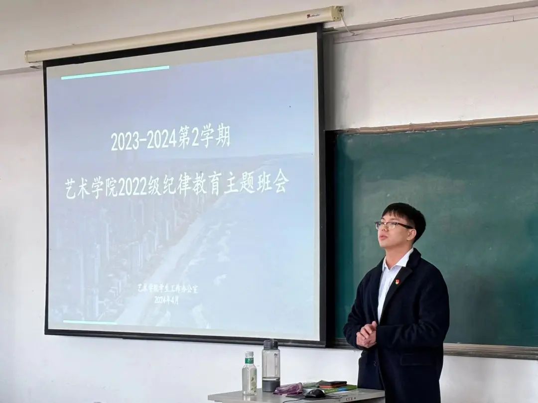 为培养学生良好的学习作风与生活习惯,保障学院各项工作顺利平稳进行,艺术学院学工办于3月13日12:00在老校区三教3421教室召开 “2022级学生2023-2024学年度第二学期年级会”,会议由辅导员毕云龙老师主持,2022级全体学生参加会议。