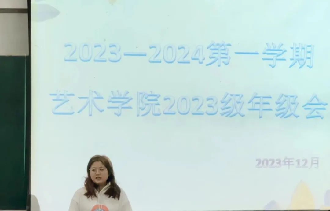 为推进学院期末考试工作顺利开展,严肃考风考纪,加强学风建设。艺术学院于12月13日,在2202教室召开2023—2024第一学期2023级期末年级会,会议由辅导员郑焱老师主持,2023级全体同学参加此次会议。