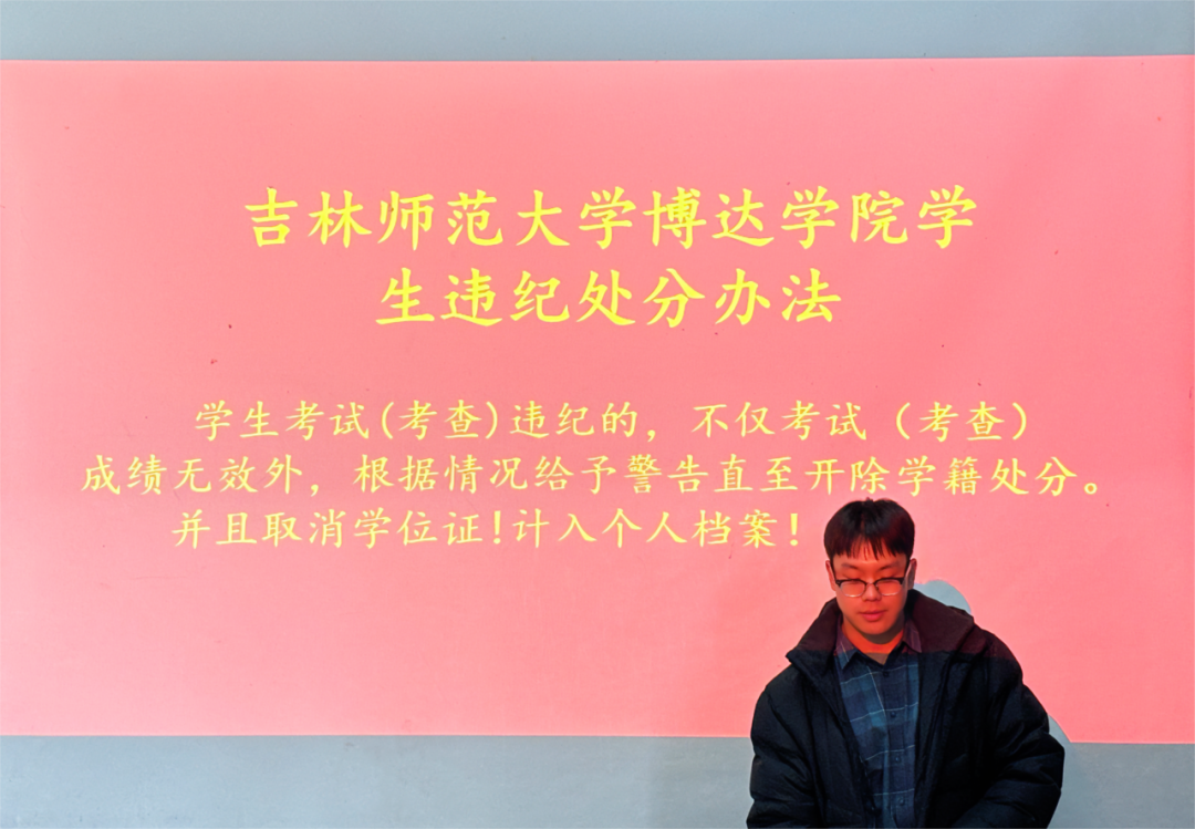 通过本次会议的召开,使同学们深刻认识到诚信考试的重要性,加强了考风考纪建设,提高了同学们的诚信意识和诚信素质。孟子有云:“车无辕而不行,人无信则不立”。愿同学们以诚信考试为荣,违纪作弊为耻。最后,预祝吉林师范大学博达学院艺术学院同学们在期末考试中取得理想的成绩。