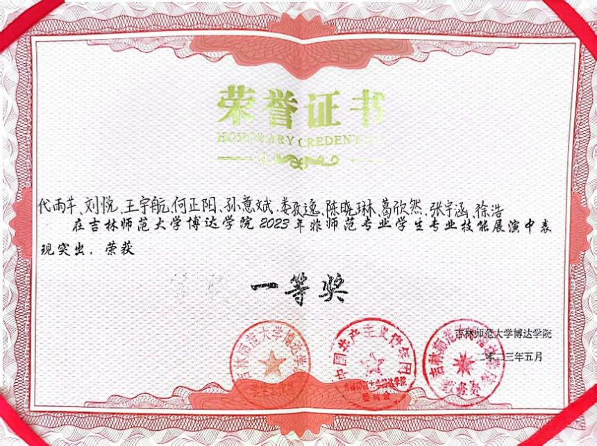 纸上得来终觉浅,绝知此事要躬行。支部同学敢于担当作为,多位同学均在学校、学院各部门有任职,积极参加各项比赛并取得佳绩,例如在专业赛场上获得“非师范生专业学生学生专业技能大赛”一等奖一次、二等奖一次,“外研社·国才杯”三等奖,“大学生互联网+大赛”省级奖项,还有在军训场上,荣获“军训标兵”的称号。