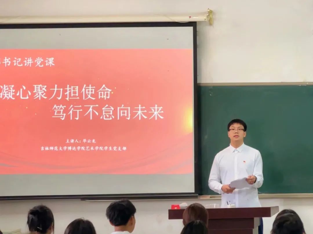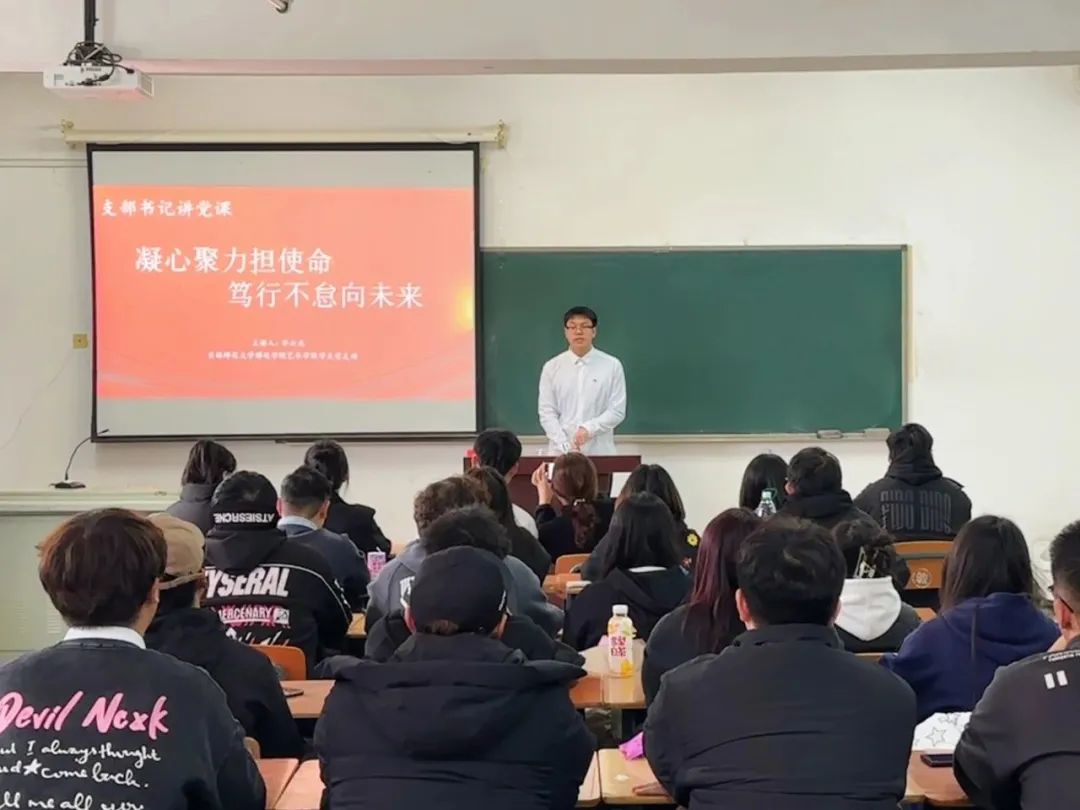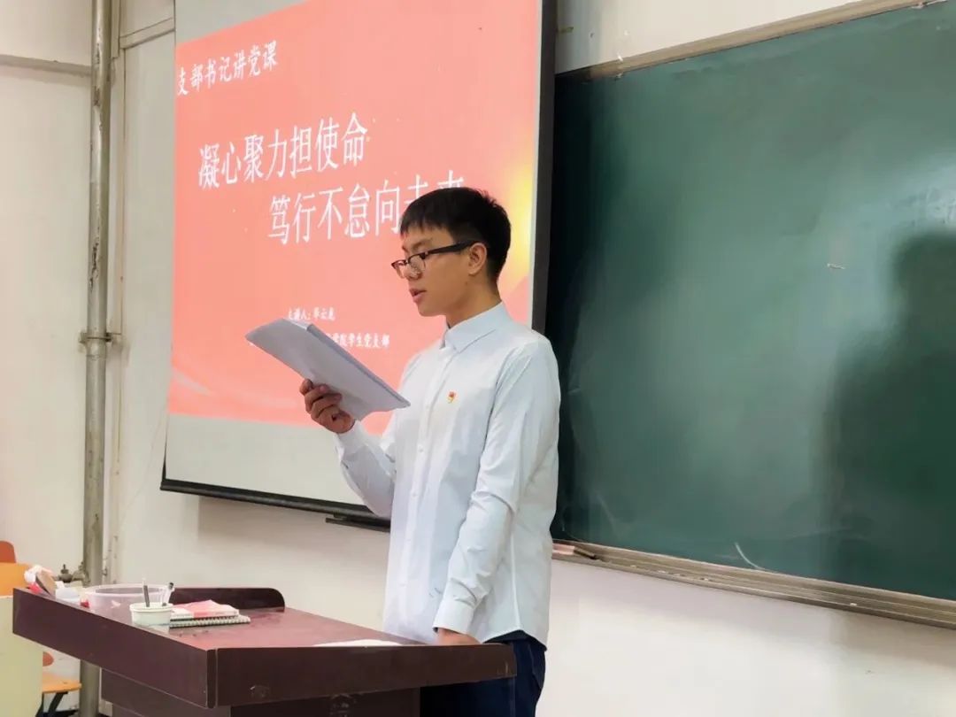 支部书记毕云龙老师围绕“凝心聚力担使命 笃行不怠向未来”这一主题,带领参会学生学习党的基本知识,提高政治思想素质,强化党性观念。同时指出,党始终把青年工作作为一项极为重要的工作,始终集最大力量做好青年工作,始终向青年敞开大门。一代代青年汇聚在党的旗帜下,用拼搏与奋斗谱写了一曲曲嘹亮的青春之歌。
